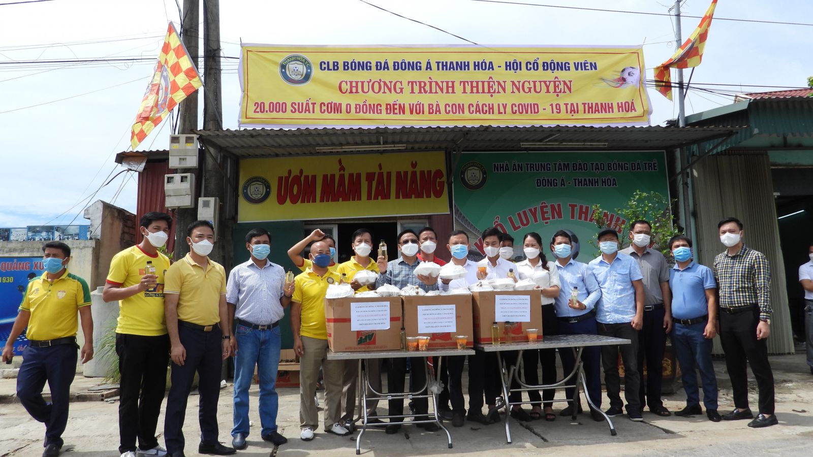 Sáng 17/8/2021, tại Trung tâm đào tạo Bóng đá trẻ Thanh Hóa (Thị trấn Tân Phong, huyện Quảng Xương), CLB bóng đá Đông Á Thanh Hóa phối hợp với Hội cổ động viên (CĐV) bóng đá Thanh Hóa tổ chức chương trình Trao tặng lương thực, thực phẩm hỗ trợ phòng chống Covid 19 cho bà con tại các khu cách ly tập trung trên địa bàn tỉnh.
