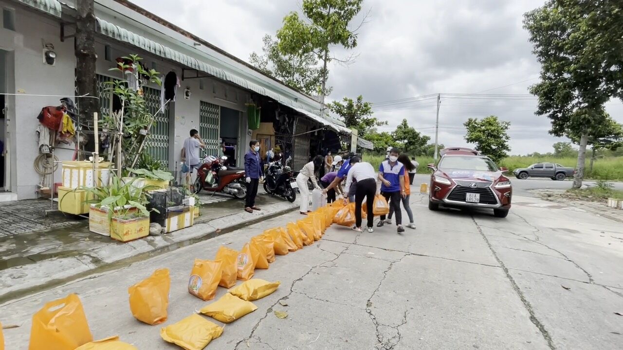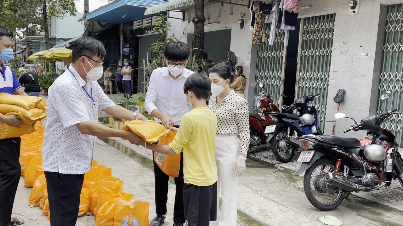 Bên cạnh đó, 1.000 phần quà là nhu yếu phẩm quà hỗ trợ người dân khó khăn trong vùng dịch gồm có: Gạo, trứng, nước tương, nước mắn, cá khô và bánh Trung Thu, mỗi phần trị giá 300.000 đồng.