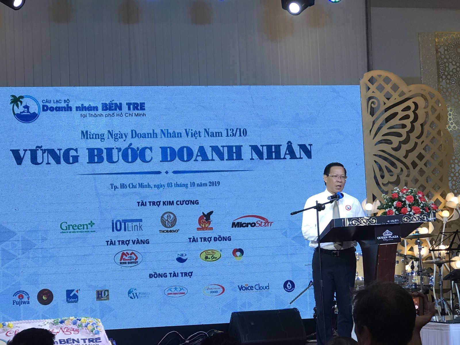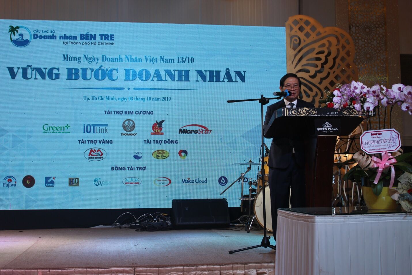 Ông Huỳnh Kỳ Trân, chủ tịch CLB Doanh Nhân Bến Tre tại Tp HCM phát biểu khai mạc.