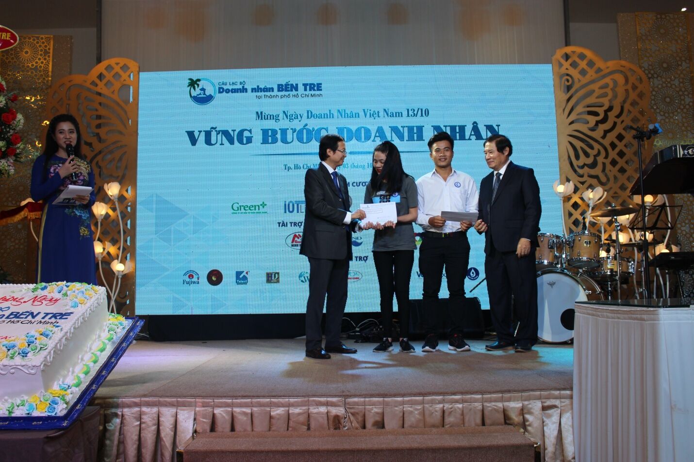 Ông Huỳnh Kỳ Trân - Chủ tịch BBC cùng lãnh đạo BBC trao học bổng cho 02 sinh viên quê hương Bến Tre đang học tại trường ĐH Bách Khoa TP. HCM .