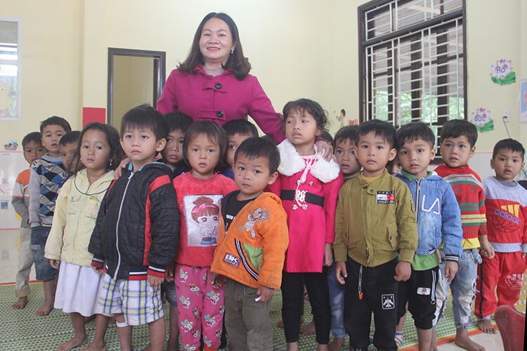 Đứng bên ngoài điểm trường mầm non Kreng (Trường mầm non xã Hướng Hiệp, huyện Đăkrông), nghe tiếng trẻ cười nói vui vẻ, cô giáo Trung mỉm cười hài lòng. Điểm trường xập xệ xưa kia nay được xây dựng khang trang với ba phòng học, phòng chức năng, nhà để xe, sân chơi, tường rào và cổng. Đây là nơi dạy học của 100 trẻ mầm non thuộc thôn Gia Giã, xã Hướng Hiệp. Cô Hồ Thị Trung về làm dâu và công tác tại trường mầm non xã Hướng Hiệp, nhà ngay cạnh điểm trường Kreng. Những ngày đầu, bố mẹ cho vợ chồng cô mảnh đất dựng nhà, trồng hoa màu cải thiện cuộc sống.