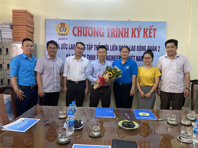 LĐLĐ quận 2, TP HCM đã đại diện tập thể NLĐ Công ty TNHH Top Engineering Việt Nam ký kết thỏa ước lao động tập thể với ban giám đốc công ty vào sáng 28-7. Đây là đơn vị chưa có Công đoàn. Sau khi tham khảo ý kiến NLĐ và tiến hành thương lượng, hai bên đã thống nhất các nội dung để đưa vào thỏa ước. Trong đó, có nhiều nội dung cao hơn luật và có lợi cho NLĐ.