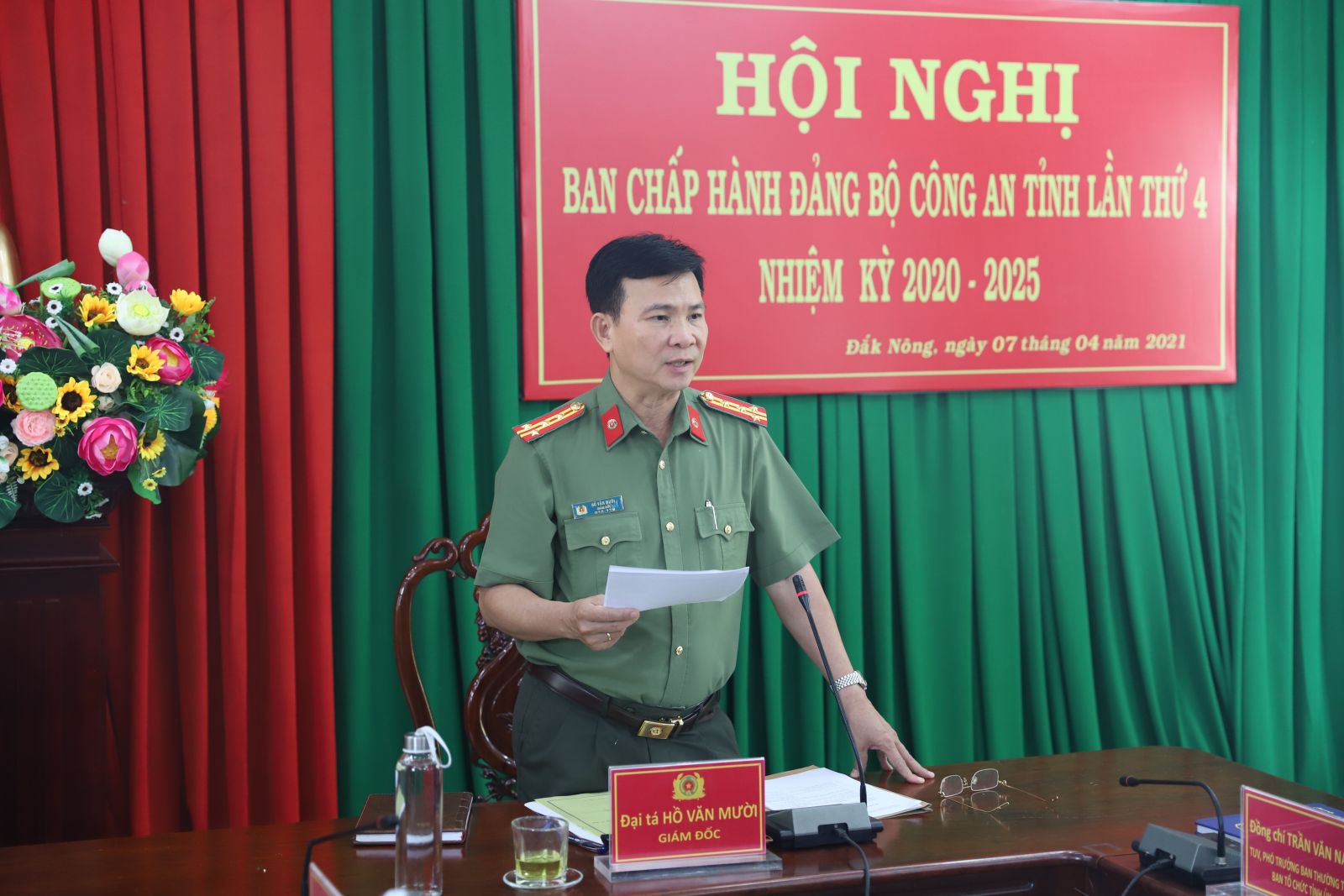 Phát biểu kết luận hội nghị, thay mặt Đảng ủy, lãnh đạo Công an tỉnh, Đại tá Hồ Văn Mười, Bí thư Đảng ủy, Giám đốc Công an tỉnh đã ghi nhận, biểu dương và đánh giá cao những thành tích, kết quả đạt được của lực lượng Công an toàn tỉnh trên các mặt công tác trong thời gian qua. Đồng thời đề nghị các đồng chí trong Ban Thường vụ, Ban Chấp hành tiếp tục lãnh đạo, chỉ đạo Công an các đơn vị, địa phương thực hiện có hiệu quả nhiệm vụ chính trị được giao với việc bảo đảm tốt an ninh, trật tự, bảo vệ tuyệt đối an toàn bầu cử Quốc hội và Hội đồng nhân dân các cấp, làm tốt công tác phòng, chống dịch bệnh Covid-19, tiếp tục thực hiện quyết liệt các giải pháp nhằm đẩy nhanh tiến độ cấp thẻ căn cước công dân có gắn chíp điện tử theo chỉ đạo của Bộ Công an. Tiếp tục làm tốt công tác xây dựng đảng, xây dựng lực lượng, hậu cần, công tác chính trị tư tưởng, góp phần xây dựng lực lượng Công an Đắk Nông trong sạch, vững mạnh đáp ứng yêu cầu, nhiệm vụ trong tình hình mới.