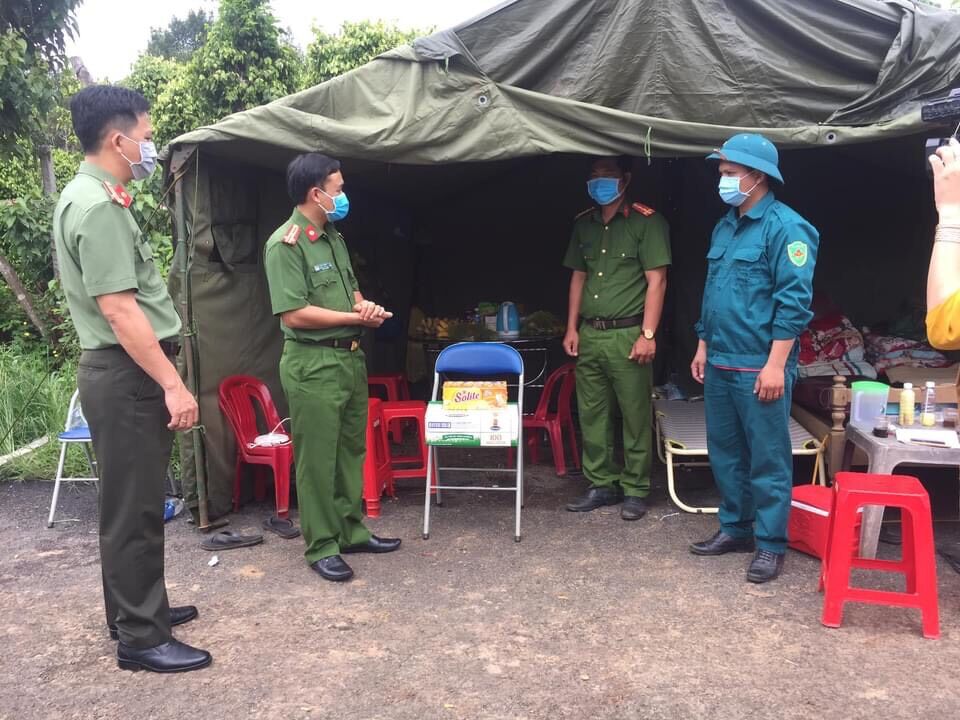 Lực lượng Công an huyện Cư Jút tích cực tham gia phòng, chống dịch tại điểm chốt ở xã Tâm Thắng.