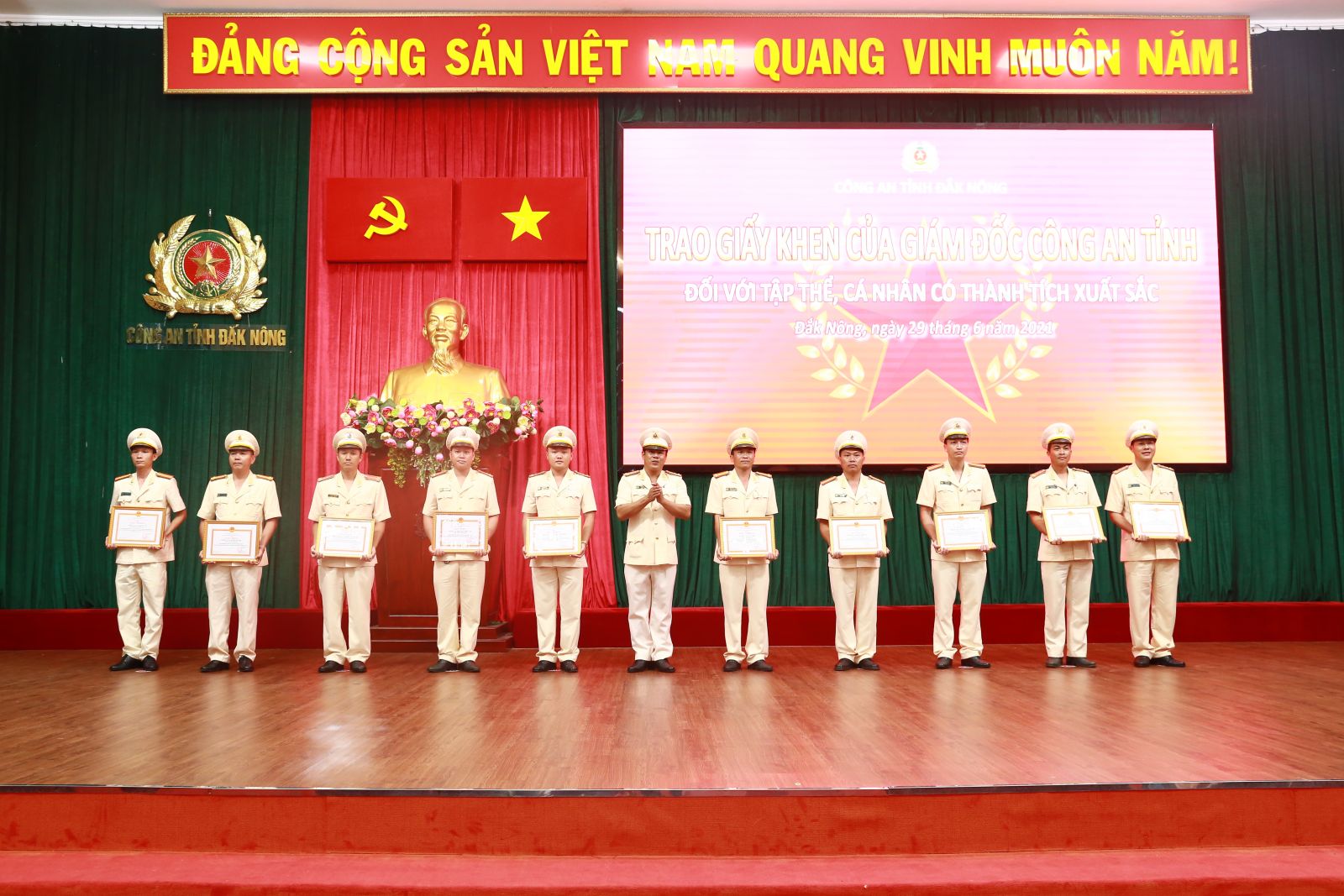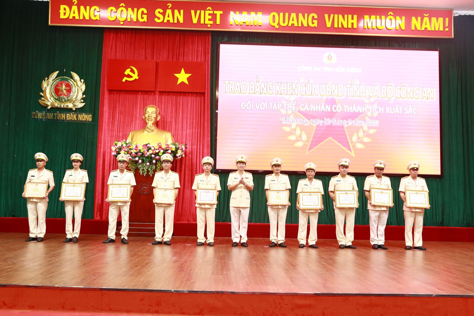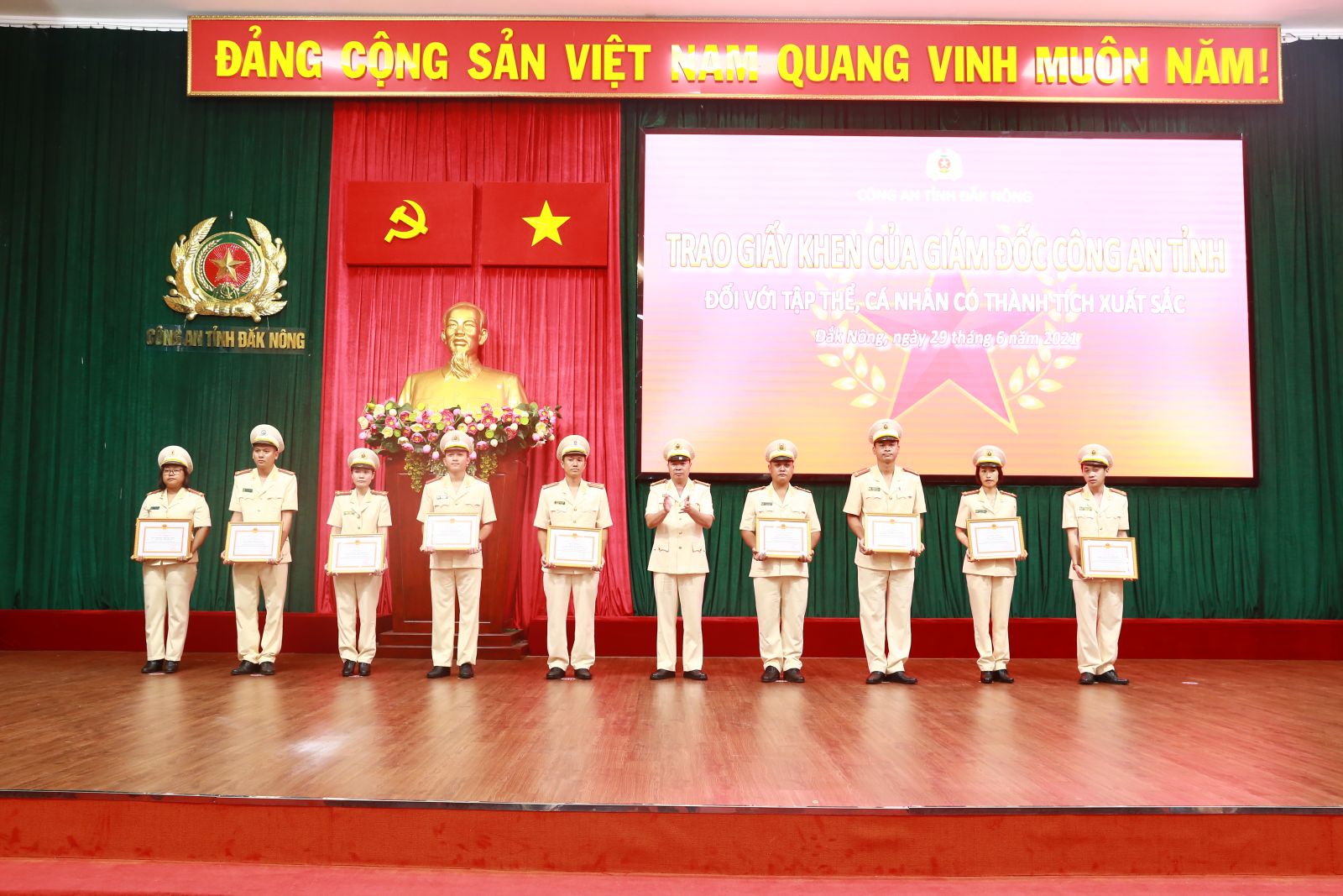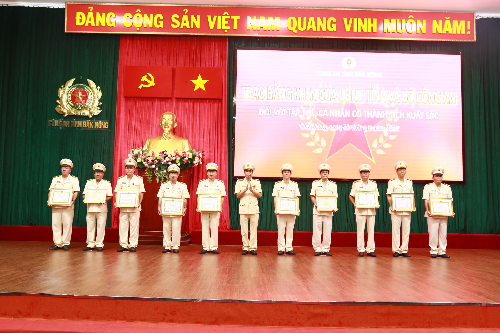 Với những thành tích, chiến công xuất sắc đó, trong 6 tháng đầu năm 2021, lực lượng Công an Đắk Nông vinh dự 2 lần được Thủ tướng Chính phủ tặng Bằng khen về thành tích xuất sắc trong các mặt công tác. Hàng trăm lượt tập thể, cá nhân được Chủ tịch nước, Thủ tướng Chính phủ, Bộ Công an, Tỉnh ủy, UBND tỉnh và giám đốc Công an tỉnh khen thưởng. Đặc biệt, Công an tỉnh được lãnh đạo Bộ Công an, Tỉnh ủy, UBND tỉnh ghi nhận, đánh giá cao và 4 lần biểu dương và thưởng nóng; Nhân dân trong và ngoài tỉnh gửi 65 lá thư cảm ơn bày tỏ lòng cảm phục trước tinh thần vì Nhân dân phục vụ và những việc làm ý nghĩa, nhân văn của lực lượng Công an Đắk Nông.