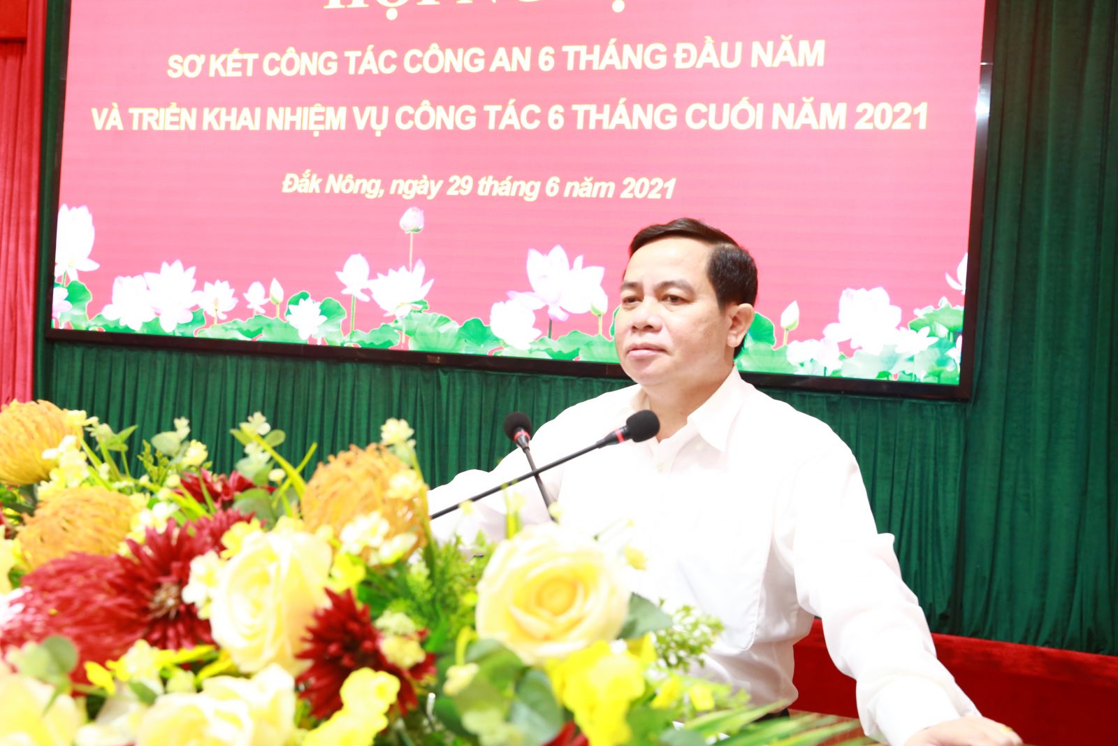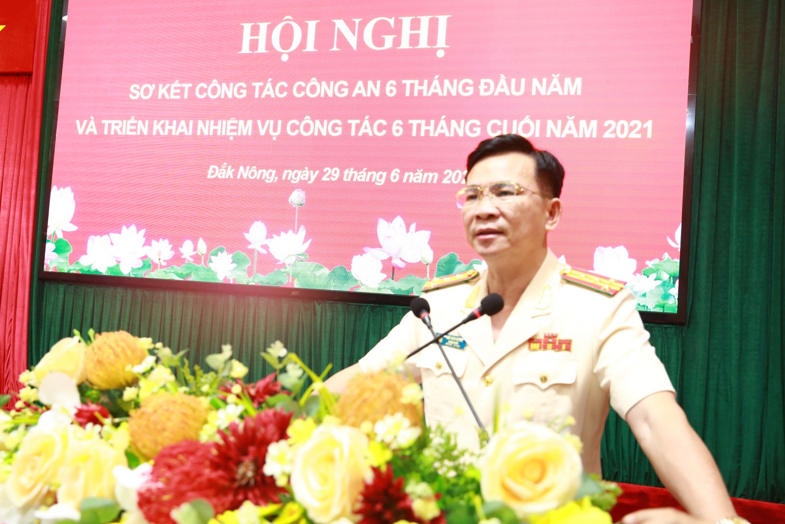 Chiều ngày 29/6, Công an tỉnh Đắk Nông đã tổ chức hội nghị sơ kết công tác Công an 6 tháng đầu năm và triển khai nhiệm vụ công tác trọng tâm 6 tháng cuối năm 2021. Đại tá Hồ Văn Mười, Ủy viên Ban Thường vụ Tỉnh ủy, Bí thư Đảng ủy, Giám đốc Công an tỉnh chủ trì hội nghị. Tham dự Hội nghị có đồng chí Điểu K’Ré, Ủy viên Ban Chấp hành Trung ương Đảng, Phó Bí thư Tỉnh ủy, đồng chí Trần Xuân Hải, Phó Chủ tịch Thường trực UBND tỉnh; lãnh đạo các ban, sở, ngành, lực lượng vũ trang tỉnh; các đồng chí Lãnh đạo Công an tỉnh; lãnh đạo, chỉ huy Công an các đơn vị, địa phương trong tỉnh.
