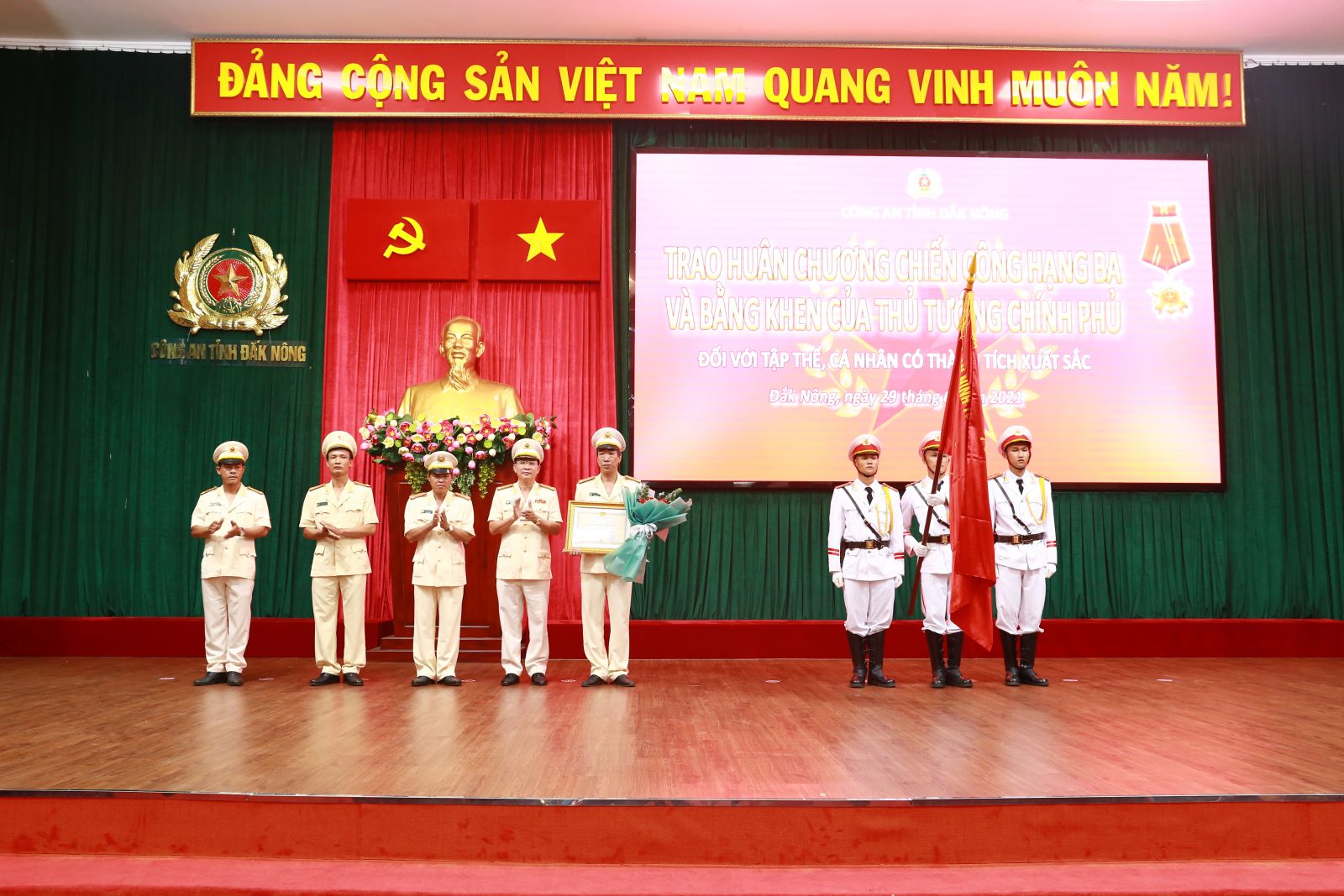 Nhân dịp này, Công an tỉnh Đắk Nông đã trao Huân chương Chiến công hạng ba, Bằng khen của Thủ tướng Chính phủ, Bộ Công an, UBND tỉnh cho các tập thể, cá nhân; trao danh hiệu chiến sĩ thi đua toàn lực lượng, giấy khen của Giám đốc Công an tỉnh cho các tập thể, cá nhân có thành tích xuất sắc trong các mặt công tác./.