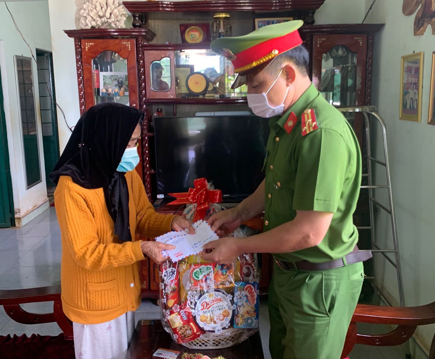 Thượng tá Nguyễn Đức Thùy – Trưởng công an huyện Đắk Song tặng quà cho Mẹ Việt Nam Anh hùng Châu Thị Nghê.