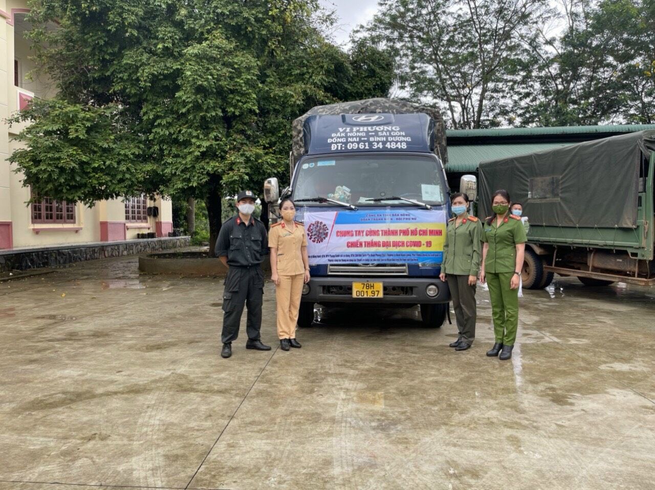 Ngày 07/8/2021, chuyến xe ô tô chở hơn 10 tấn rau, củ, quả mang theo những tình cảm đặc biệt của cán bộ, chiến sĩ Công an tỉnh Đắk Nông đã lăn bánh hướng về Thành phố Hồ Chí Minh để hỗ trợ, chia sẻ với những khó khăn của quân và dân Thành phố trong những ngày chống dịch Covid-19.