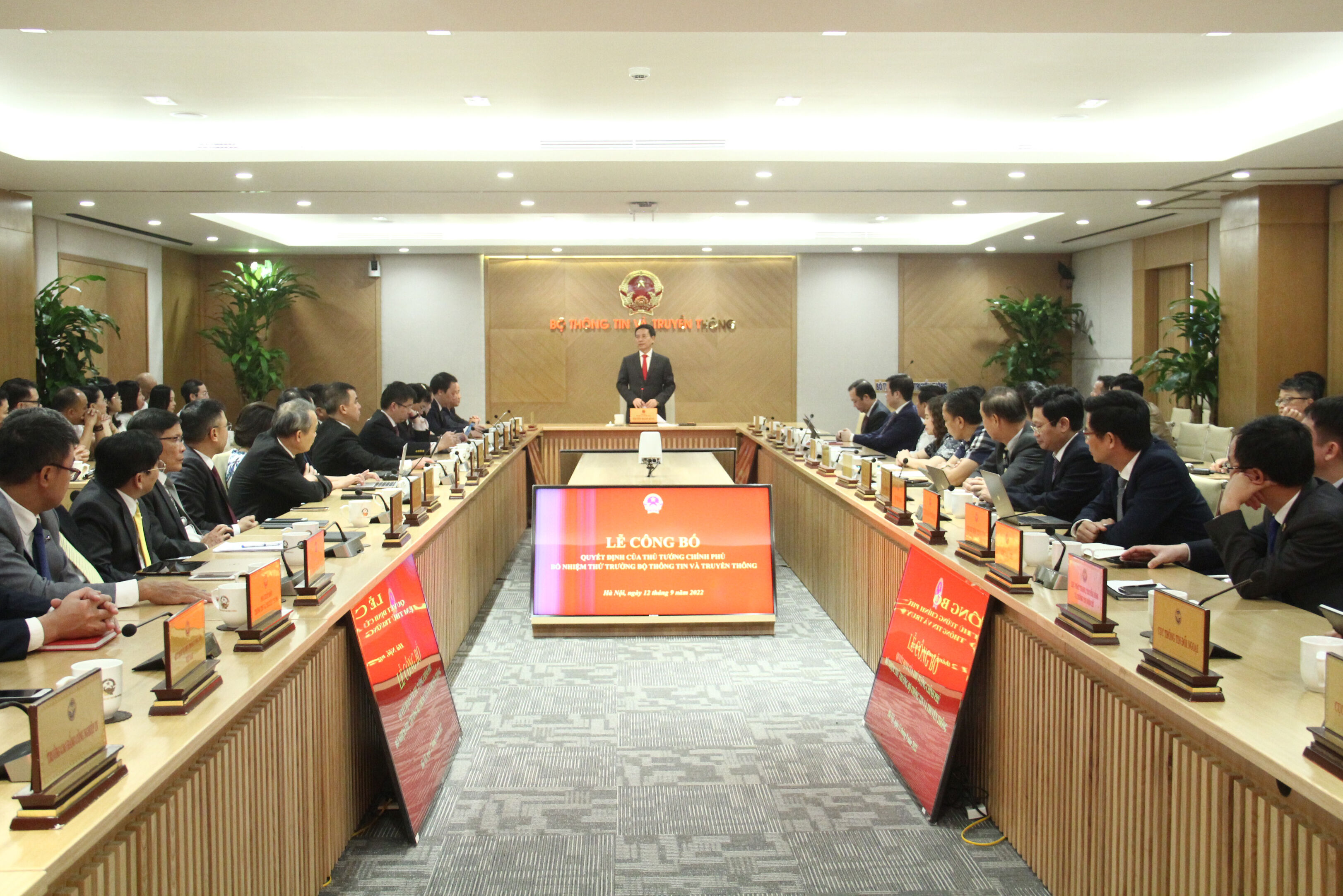 Tại buổi lễ, thừa ủy quyền của Thủ tướng Chính phủ, Bộ trưởng Bộ TT&TT Nguyễn Mạnh Hùng đã trao Quyết định số 1066/QĐ-TTg của Thủ tướng Chính phủ về việc bổ nhiệm chức vụ Thứ trưởng Bộ TT&TT cho ông Nguyễn Thanh Lâm.