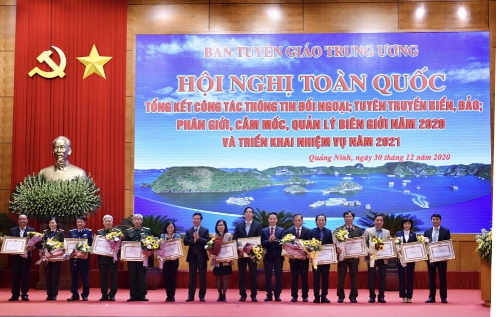 Ban Tuyên giáo Trung ương đã tặng Bằng khen cho 30 tập thể đạt thành tích xuất sắc trong công tác thông tin đối ngoại; tuyên truyền biển, đảo, phân giới, cắm mốc và quản lý biên giới trên đất liền trong năm 2020.