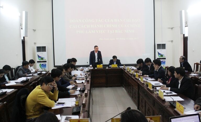 Đoàn công tác của ban chỉ đạo cải cách hành chính công họp bàn.
