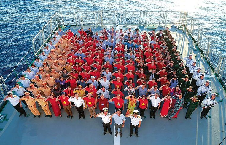 Trí thức và bà con Việt kiều thăm Trường Sa. Ảnh: baoquocte.vn