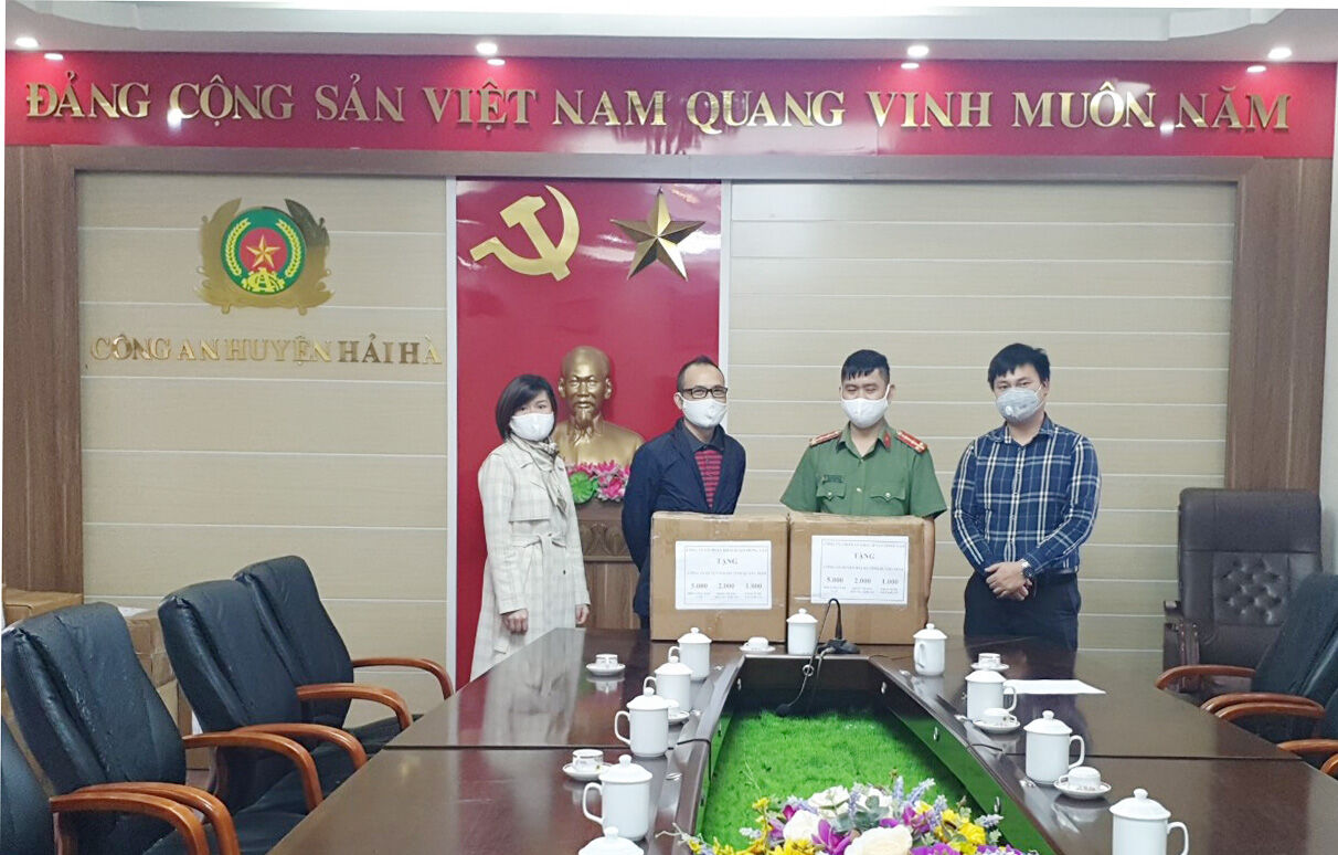 Đại diện Công ty trao tặng vật tư y tế tại Công an huyện Hải Hà