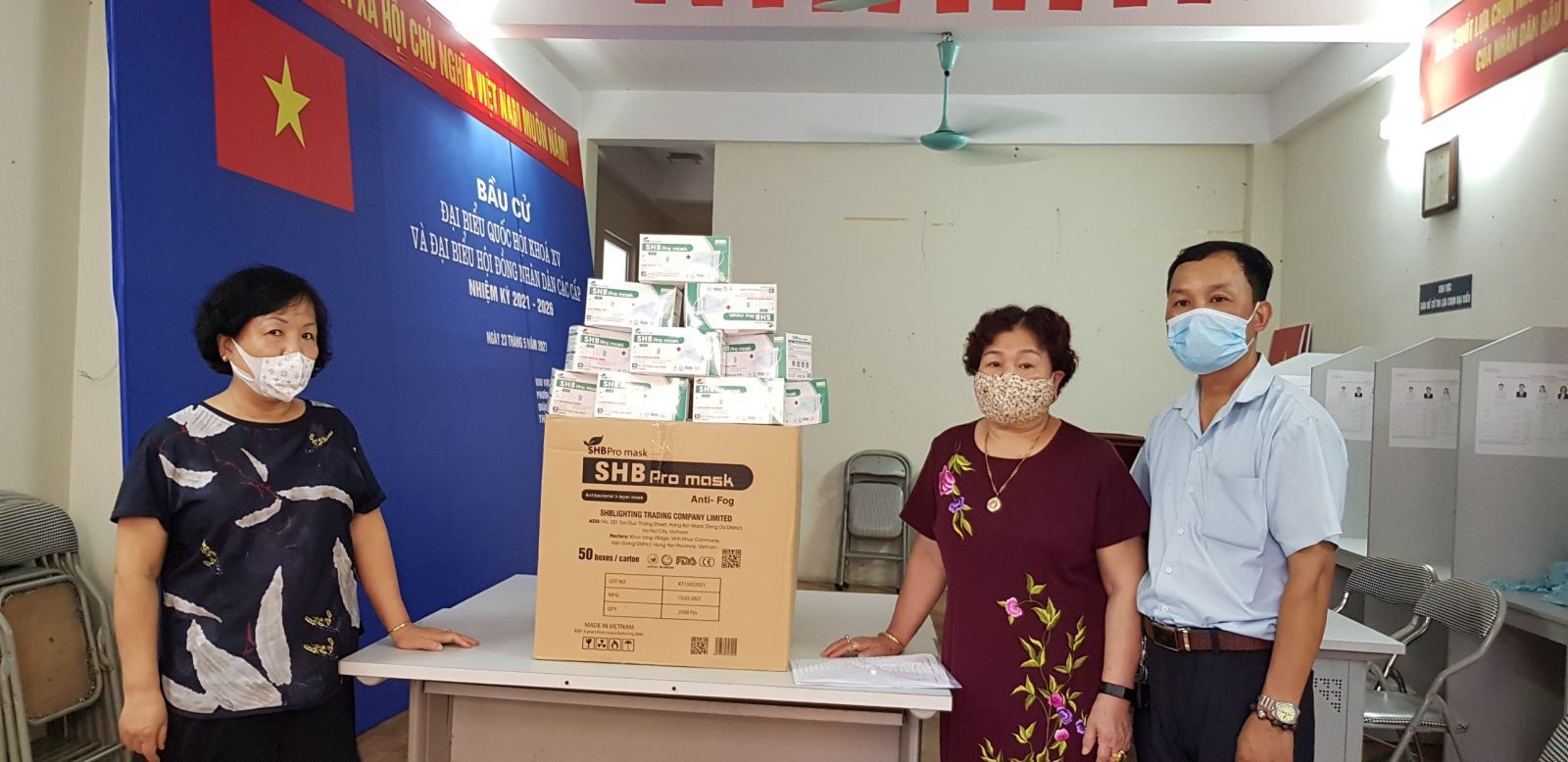 Công ty CPĐT Sức khoẻ Cộng đồng trao tặng 32.500 khẩu trang y tế cho 13 Chi hội phường Thượng Đình