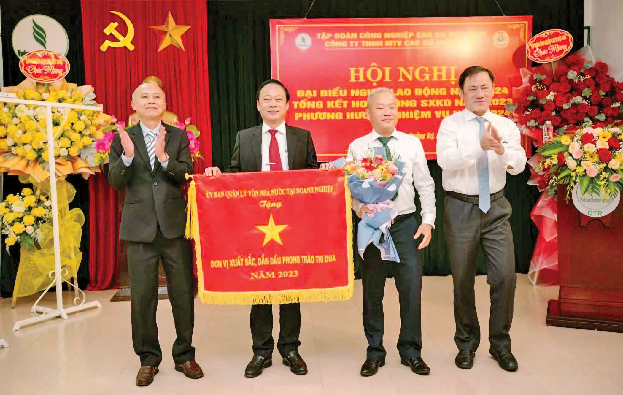 Ủy ban Quản lý vốn nhà nước tại doanh nghiệp tặng Cờ Đơn vị xuất sắc, dẫn đầu phong trào thi đua năm 2023 cho Công ty TNHH MTV Cao su Quảng Trị