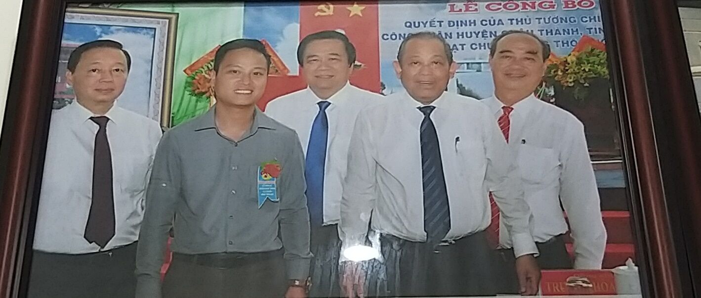 Ông Đặng Văn Tuấn - Giám đốc Hưng Nguyên 3 chụp ảnh lưu niệm cùng Phó Thủ tướng Trương Hòa Bình tại buổi lễ trao quyết định công nhận Huyện nông thôn mới Huyện Châu Thành (2/2020)