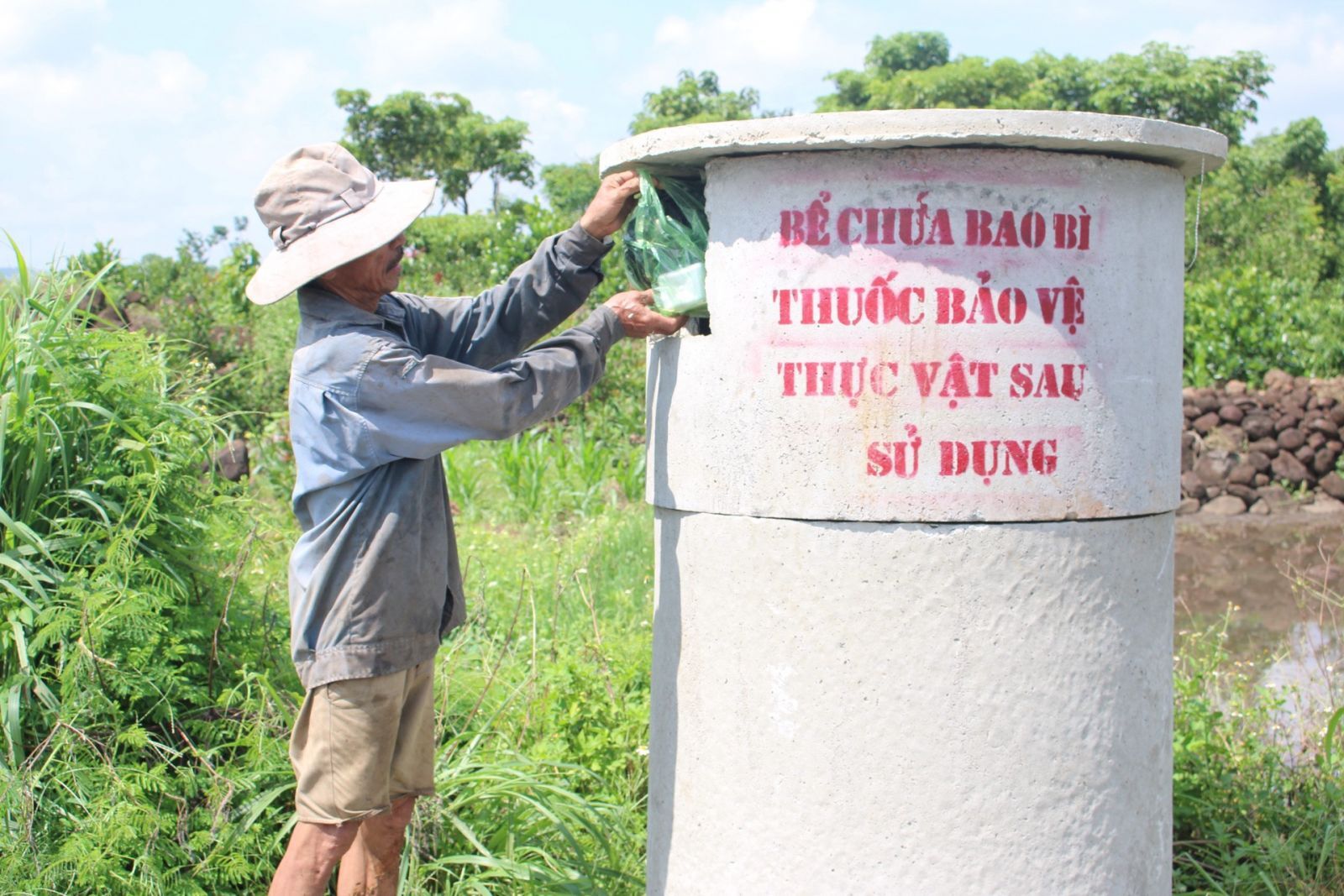 Các điểm đặt bể chứa rác thải nguy hại được đặt ở vị trí thuận tiện trên các cách đồng, tiện lợi cho bà con sử dụng.