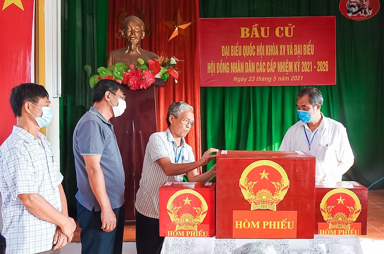 Ông Ngô Quốc Huê (85 tuổi) là một trong những cử tri cao tuổi tại khu vực bỏ phiếu số 3 chia sẻ: “Đây có lẽ là lần bỏ phiếu khá đặc biệt trong đời tôi bởi cuộc bầu cử diễn ra trong bối cảnh cả nước đang chung tay phòng chống dịch Covid-19. Hôm nay tôi đã tự tay bỏ phiếu cho những người mình tín nhiệm và mong người trúng cử sẽ khôn ngừng phấn đấu để làm tốt vai trò cầu nối giữa Đảng, chính quyền với nhân dân.”