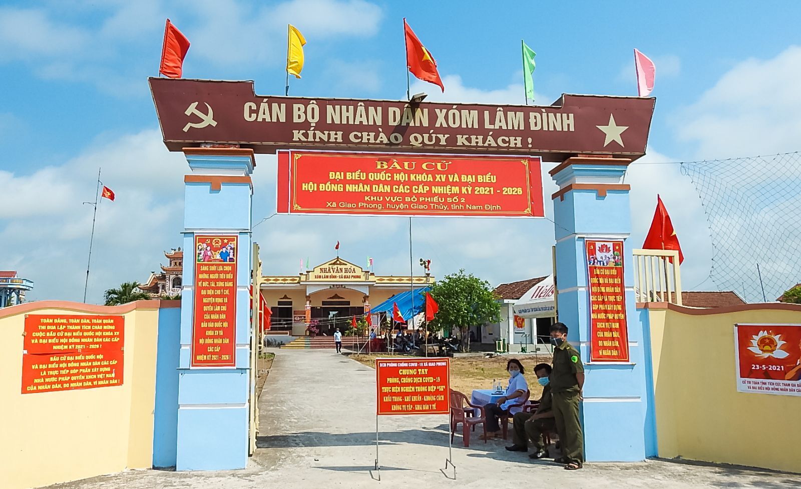 Công tác đảm bảo an ninh trật tự và phòng, chống dịch Covid-19 tại khu vực bỏ phiếu số 2, xã Giao Phong, huyện Giao Thủy