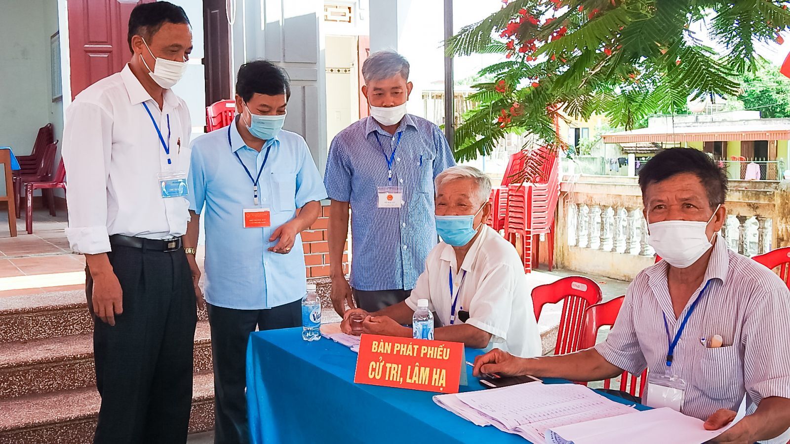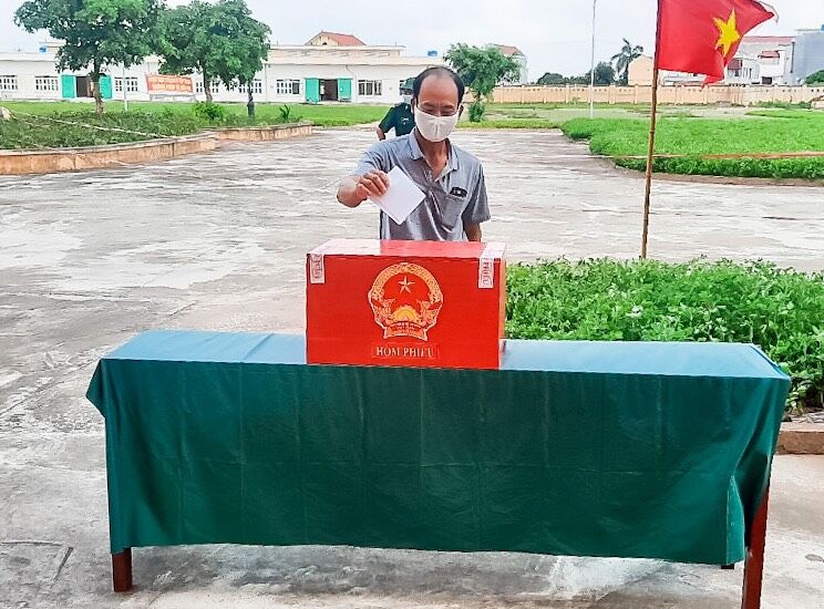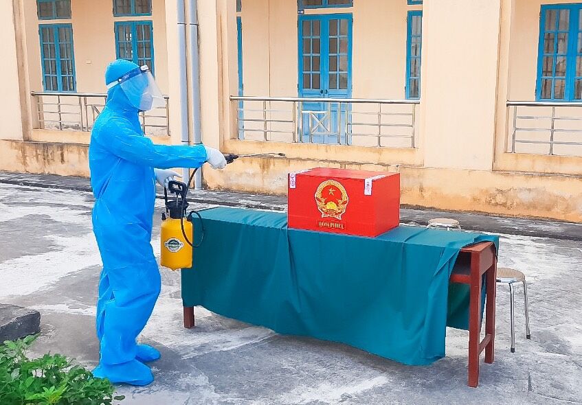 Tại khu cách ly tập trung của Trường Cao đẳng nghề Thương mại, thị trấn Quất Lâm, sau khi thực hiện đầy đủ các công tác kiểm tra sức khỏe, vệ sinh phòng dịch, tổ công tác đã vận chuyển hòm phiếu, phiếu bầu cử vào khu vực cách ly bệnh nhân. Sau khi cử tri bỏ phiếu xong, hòm phiếu được khử khuẩn và bàn giao cho Tổ bầu cử. Khu vực bỏ phiếu và các cơ sở vật chất phục vụ công tác bầu cử được phun khử khuẩn theo quy định.
