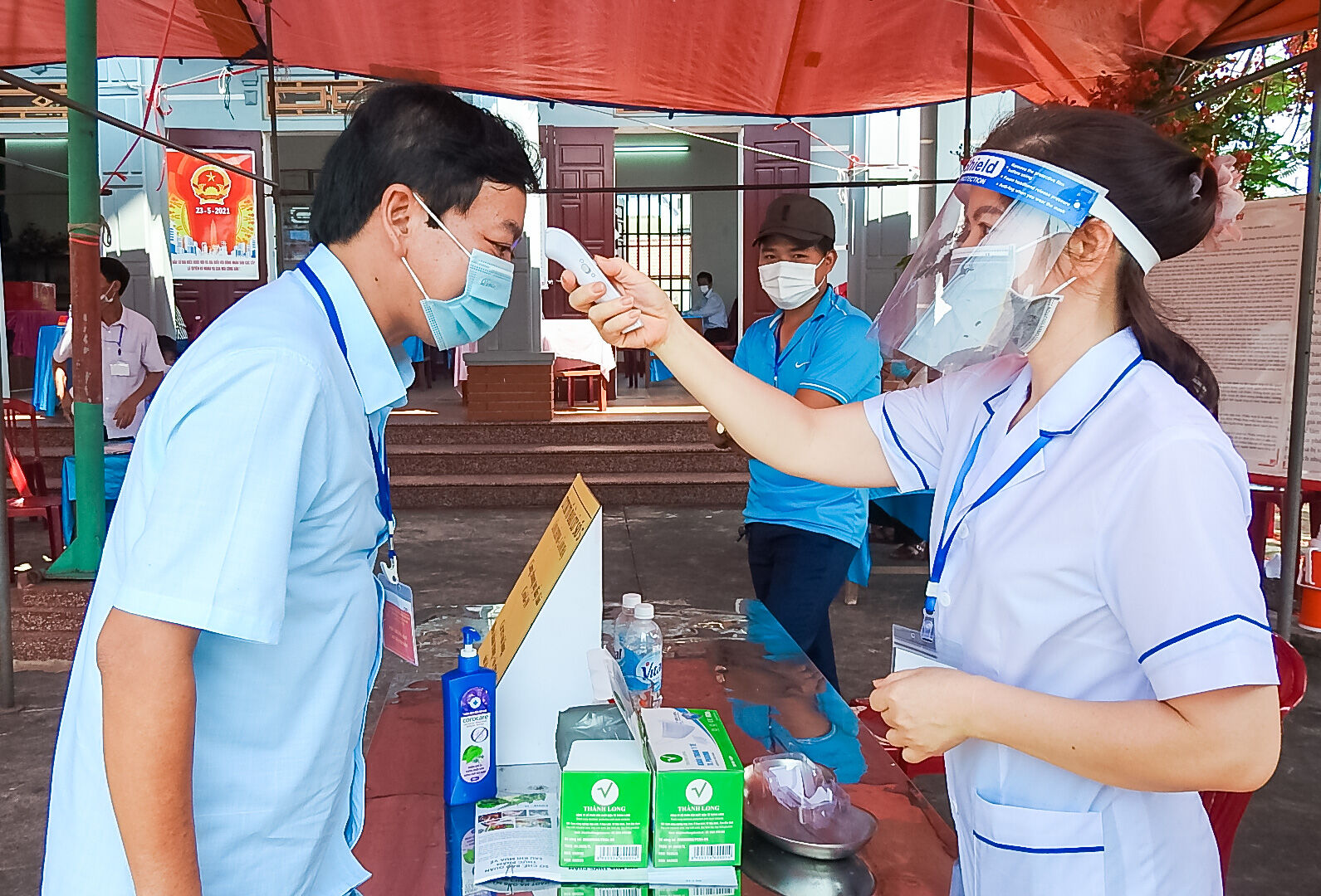 100% các khu vực bỏ phiếu trên địa bàn huyện đều bố trí khu vực khai báo y tế, đo thân nhiệt, sát khuẩn tay cho cử tri trước khi vào bỏ phiếu và hướng dẫn cử tri bảo đảm khoảng cách để phòng, chống dịch Covid-19. Bên trong khu vực bỏ phiếu đều được các đơn vị bầu cử, tổ bầu cử triển khai khoa học, nghiêm túc, đúng luật định, công tác an ninh trật tự tại các khu vực bỏ phiếu được bảo đảm.
