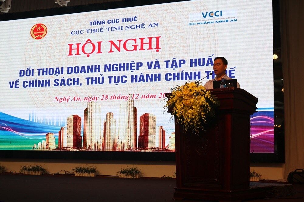 Ông Hà Lê Dũng - Phó Cục trưởng phát biểu tại Hội nghị đối thoại doanh nghiệp và tập huấn về chính sách, thủ tục hành chính thuế
