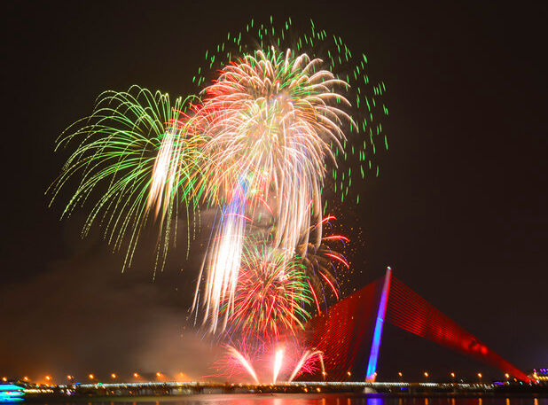 VNHN- Đồng hồ điểm 00 giờ ngày 25.1, phút giao thừa bước sang năm Canh tý 2020 bắt đầu. Đà Nẵng với hàng nghìn quả pháo hoa tầm cao, tầm thấp đã sáng rực trên bầu trời, cùng với màn hiệu ứng đặc biệt theo phương pháp trình diễn nghệ thuật không nhạc nền trong thời gian 15 phút.