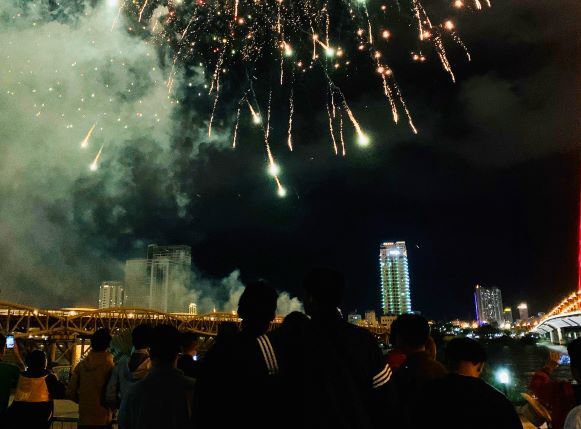 Tại điểm bắn pháo hoa bên cầu Nguyễn Văn Trỗi, nằm giữa khu vực tiếp giáp các quận Hải Châu, Ngũ Hành Sơn và Sơn Trà, người dân Đà Nẵng và hàng trăm khách du lịch đón xuân tại thành phố Đà Nẵng, trong đó có nhiều du khách người nước ngoài đã thích thú dõi theo từng chùm pháo hoa trong giờ khắc giao thừa. Ông Victor Messe người Thụy Điển cho biết: “Lần đầu tiên tôi được đón năm mới cổ truyền ở một đất nước Á Đông như Việt Nam, tôi thích lắm. Nhiều người dân đứng hai bên bờ sông Hàn reo vui khi từng chùm pháo hoa bay lên, rồi họ bắt tay chúc mừng năm mới thật ấn tượng và thân thiện”.