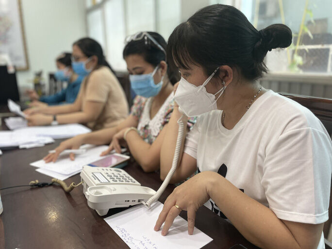 Các nhân viên gọi điện hỏi thăm các F0 tại huyện Hóc Môn, TPHCM – (Nguồn: Internet)