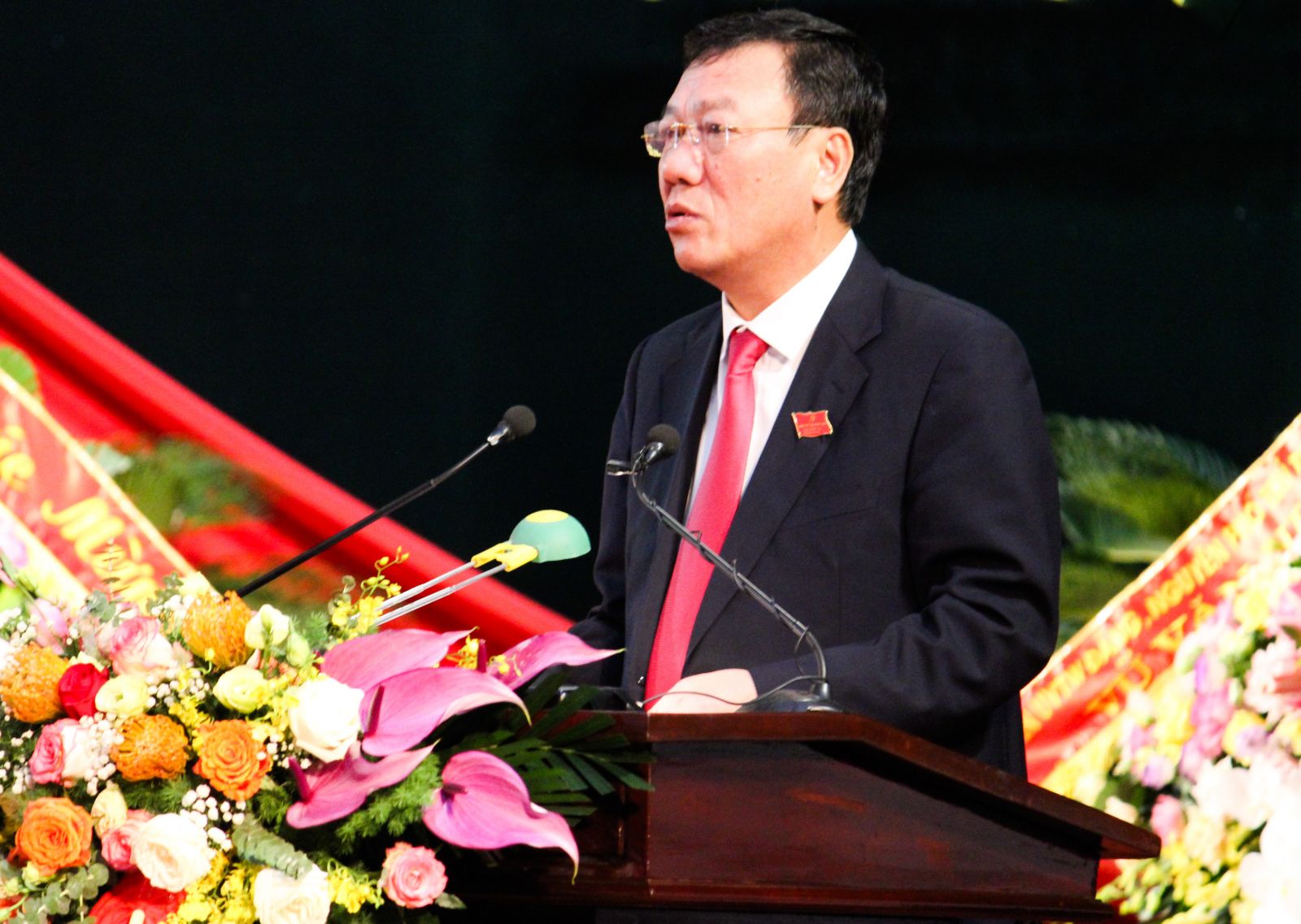 Bí thư Tỉnh ủy Nam Định Đoàn Hồng Phong trình bày diễn văn bế mạc Đại hội