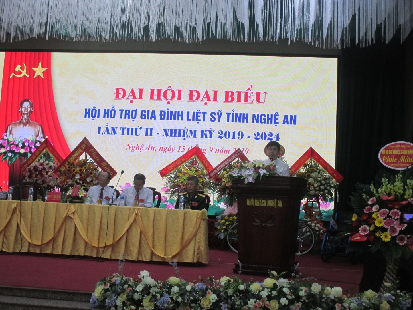 VNHN - Sáng nay (15/9), tại Hội trường Nhà khách Nghệ An (số 4 Phan Đăng Lưu, TP Vinh), Hội Hỗ trợ gia đình Liệt sỹ tỉnh Nghệ An tổ chức Đại hội đại biểu lần thứ 2, nhiệm kỳ 2019 - 2024.
