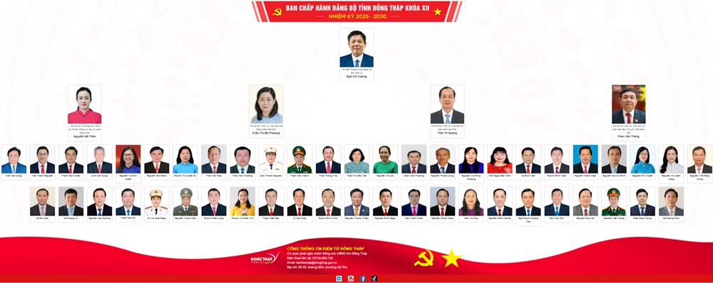 Nhiệm kỳ 2025 – 2030, Ban Chấp hành Đảng bộ tỉnh Đồng Tháp có 53 đồng chí, Ủy viên Ban Thường vụ Tỉnh ủy có 16 đồng chí - Ảnh: TL