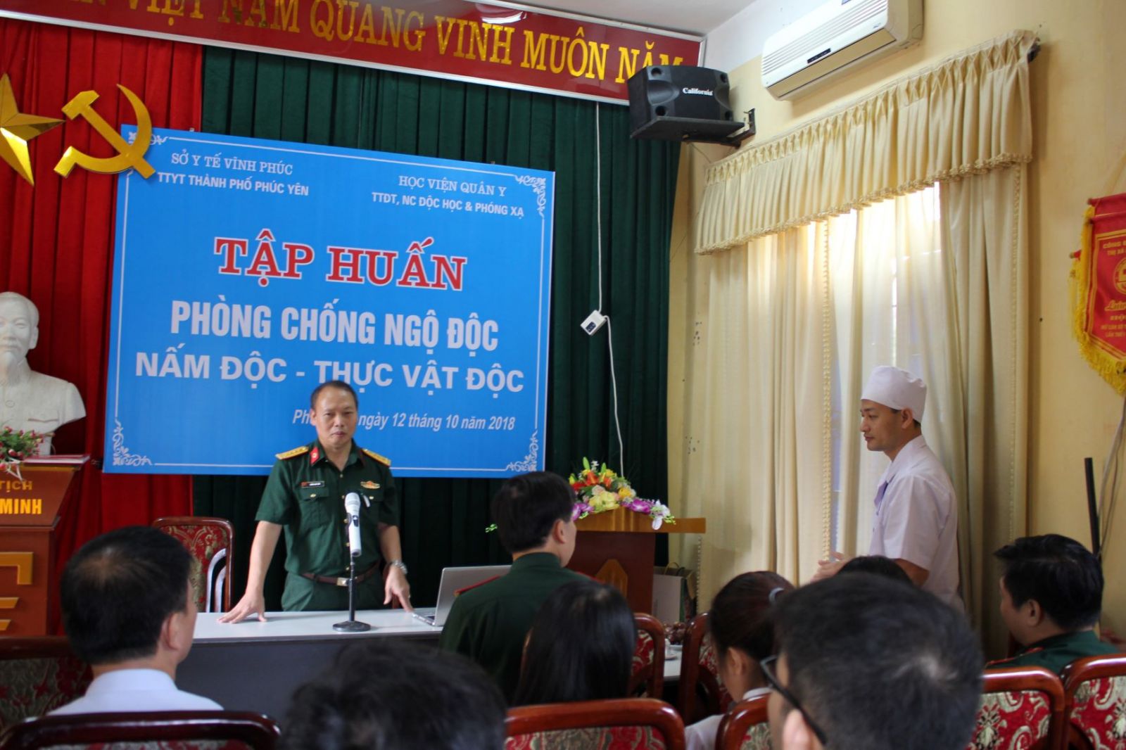 Đại tá, TS. Hoàng Anh Tuấn phát biểu tại chuyến tập huấn cho cán bộ y tế của tỉnh Vĩnh Phúc về phòng chống Nấm độc - Thực vật độc.