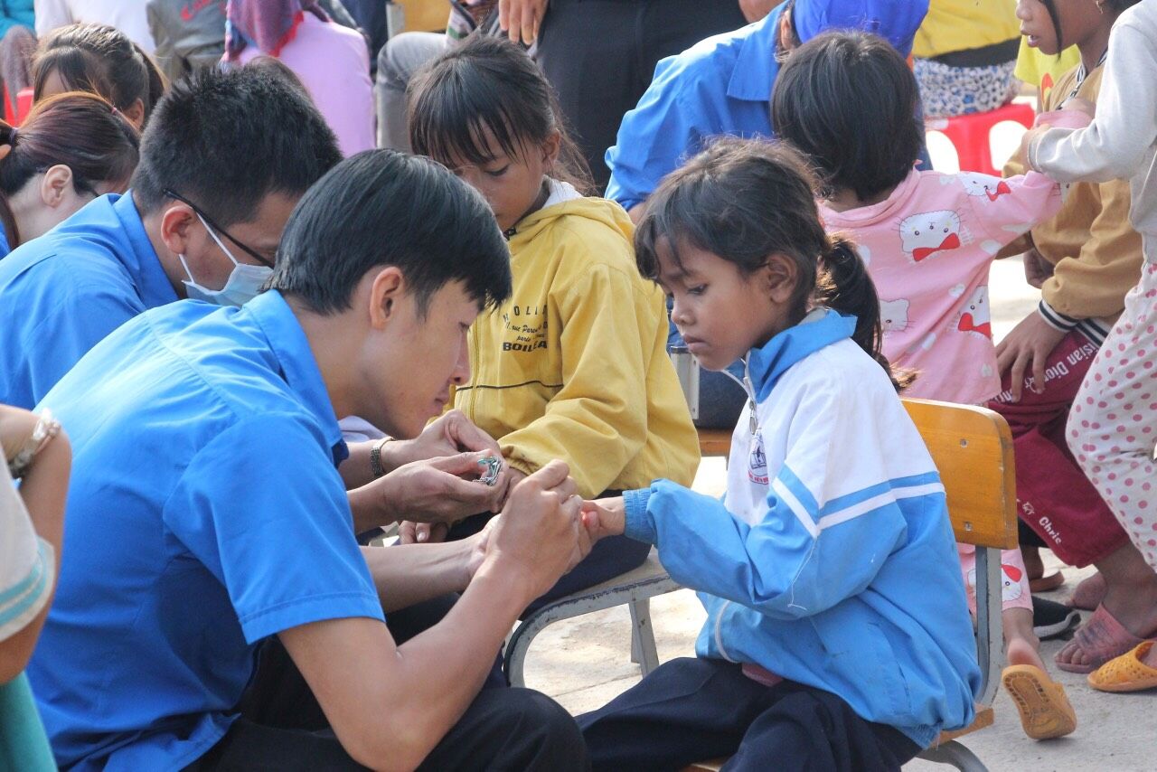 Đồng thời, Đoàn cũng đã tổ chức chương trình Nhân ái – Vì sức khỏe cộng đồng, khám chữa bệnh miễn phí cho hơn 450 người dân có hoàn cảnh đặc biệt khó khăn; cắt tóc, bấm móng tay cho 200 trẻ em nghèo; phát tờ rơi tuyên truyền phòng chống bệnh sốt xuất huyết, viêm gan B…; tập huấn, chuyển giao kỹ thuật trồng và chăm sóc cây cà phê, trồng dâu nuôi tằm cho 150 hộ dân tại địa phương.