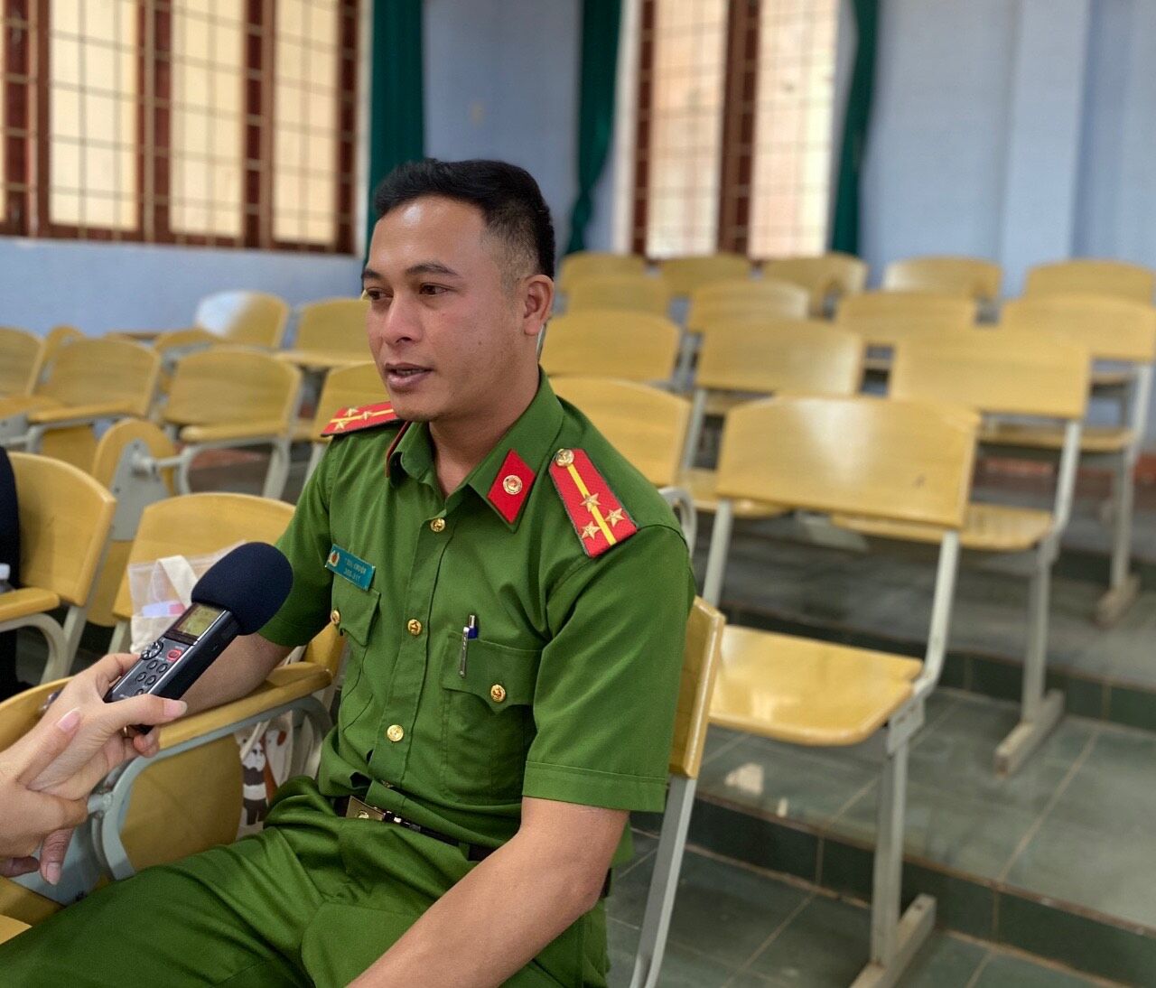Thượng úy Y Zel Kbuôr ,Công an xã Ea Phê trả lời phỏng vấn của phóng viên.