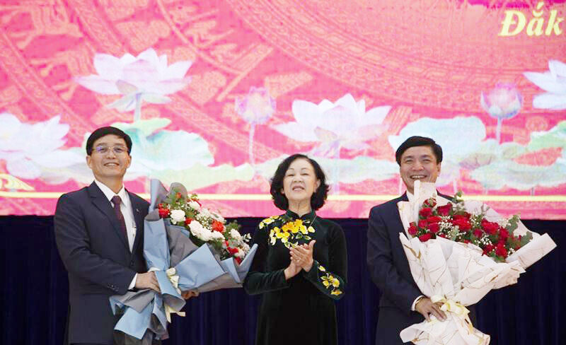 Đồng chí Trương Thị Mai cũng chúc mừng đồng chí Nguyễn Đình Trung vừa nhận trọng trách mới của Đảng, chúc ông Trung tiếp tục phát huy năng lực, dành nhiều tâm huyết cho sự phát triển của Đắk Lắk, cùng với Ban chấp hành Đảng bộ tỉnh Đắk Lắk, phấn đấu đưa Đắk Lắk trở thành trung tâm kinh tế bền vững, trung tâm du lịch - dịch vụ lớn của cả nước; đến năm 2030 phát triển toàn diện trên các lĩnh vực, trở thành đô thị trực thuộc Trung ương.