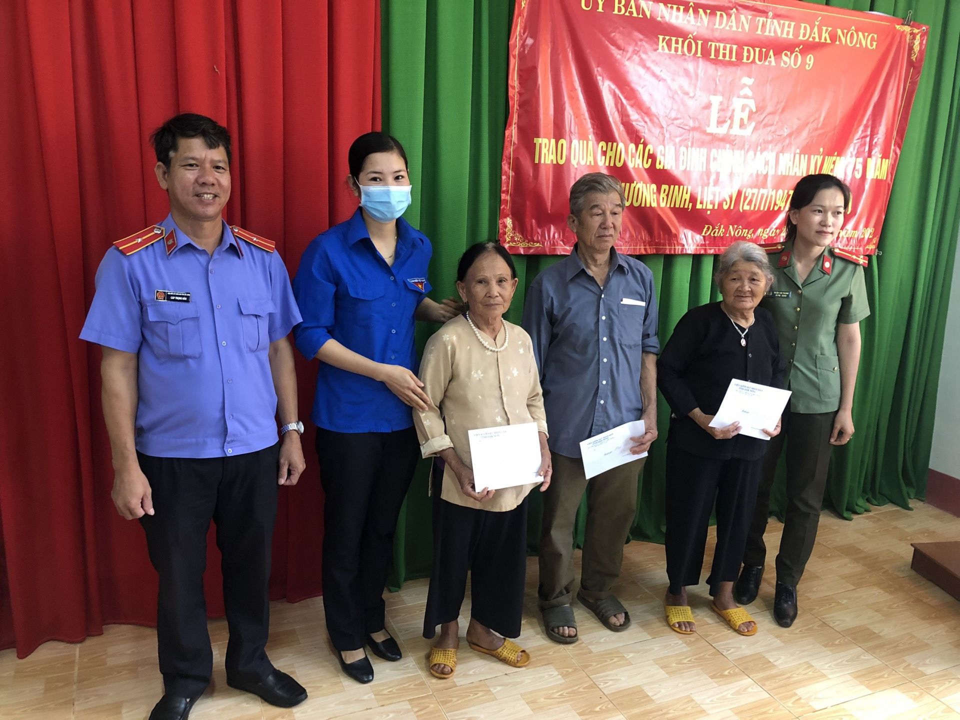 Ngày 25/7/2022, Khối thi đua số 9 UBND tỉnh Đắk Nông gồm các đơn vị; Công an tỉnh, Bộ Chỉ huy Quân sự tỉnh, Bộ Chỉ huy Bộ đội Biên phòng tỉnh, Trại giam Đắk Plao, Viện kiểm sát nhân dân tỉnh, Tòa án nhân dân tỉnh và Cục Thi hành án Dân sự tỉnh tổ chức trao tặng quà cho các gia đình chính sách, thương, bệnh binh có hoàn cảnh khó khăn trên địa bàn tại xã Đắk N’Drung, huyện biên giới Đắk Song và xã Đắk Búk So, huyện biên giới Tuy Đức.