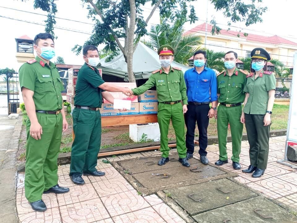 Tại các điểm đến, Trung tá Nguyễn Du – Trưởng Công an huyện Đắk R’lấp đã trao tặng 3 triệu đồng tiền mặt và các nhu yếu phẩm phục vụ ăn, uống trị giá khoảng 2 triệu đồng cho các tổ công tác. Đồng thời thăm hỏi, động viên các lực lượng trực tiếp làm nhiệm vụ phòng, chống dịch trên địa bàn huyện Đắk R’lấp khắc phục khó khăn, nêu cao tinh thần trách nhiệm thực hiện tốt nhiệm vụ được giao, góp phần ngăn chặn, không để dịch bệnh lây lan ra cộng đồng.