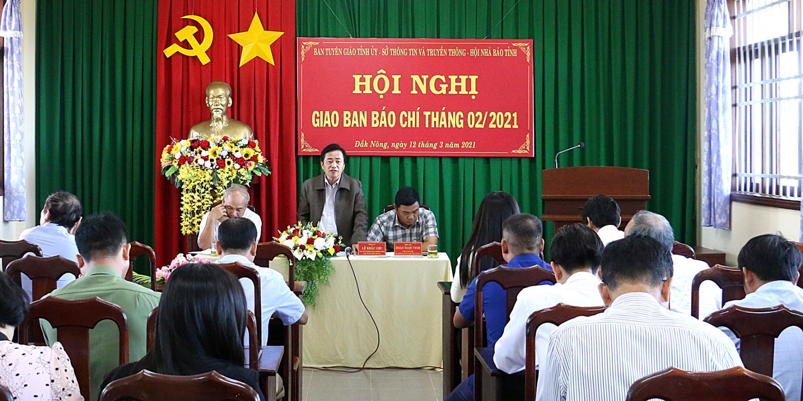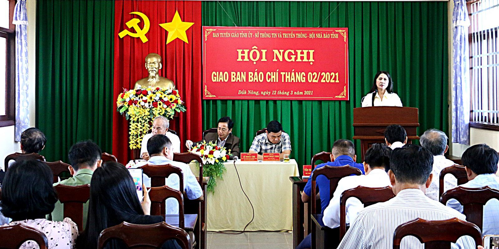 Sáng ngày 12/3, Ban Tuyên giáo tỉnh uỷ phối hợp với Sở Thông tin và Truyền thông, Hội nhà báo tỉnh tổ chức Hội nghị giao ban Báo chí, buổi hội nghị nhằm đánh giá công tác báo chí tháng 01 và 02/2021, đồng thời định hướng công tác tuyên truyền cho tháng 3/2021. Tham dự hội nghị có bà Tôn Thị Ngọc Hạnh, Phó Chủ tịch UBND tỉnh.