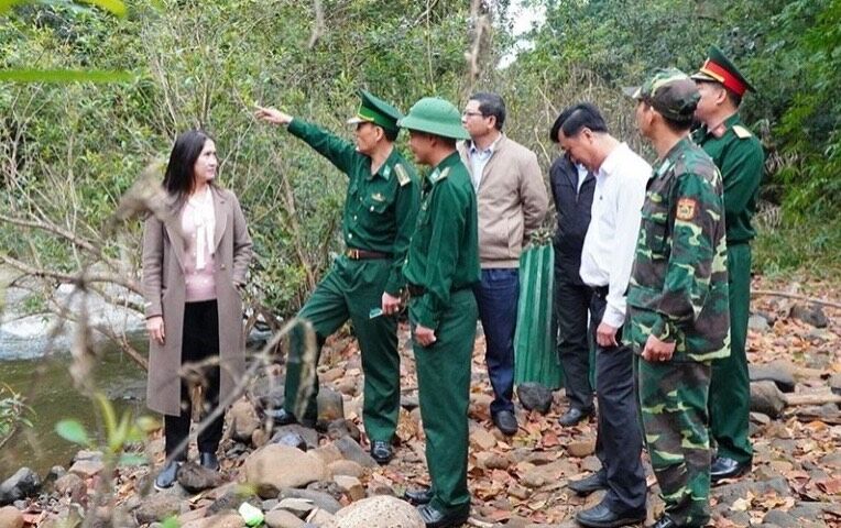 Bà Tôn Thị Ngọc Hạnh - Phó Chủ tịch UBND tỉnh kiểm tra khu vực biên giới thuộc Đồn Biên phòng Đắk Mbai.