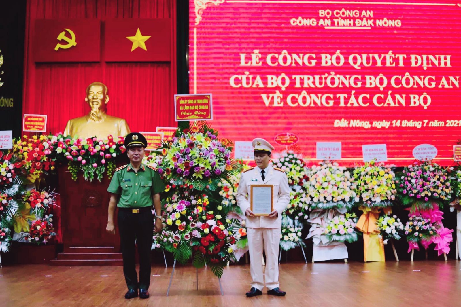 Tại buổi lễ, thừa ủy quyền của Bộ trưởng Bộ Công an, lãnh đạo Cục Tổ chức cán bộ đã thông báo Quyết định của Bộ trưởng Bộ Công an về việc chuyển ngành đối với Đại tá Hồ Văn Mười, Giám đốc Công an tỉnh Đắk Nông vừa được Trung ương phê chuẩn làm Phó Bí thư Tỉnh ủy, Chủ tịch UBND tỉnh Đắk Nông; Công bố Quyết định của Bộ trưởng Bộ Công an về điều động và bổ nhiệm Đại tá, Tiến sĩ Bùi Quang Thanh, sinh năm 1977, quê quán Bố Trạch – Quảng Bình, Phó Giám đốc Công an tỉnh Quảng Bình đến nhận công tác và giữ chức vụ Giám đốc Công an tỉnh Đắk Nông.