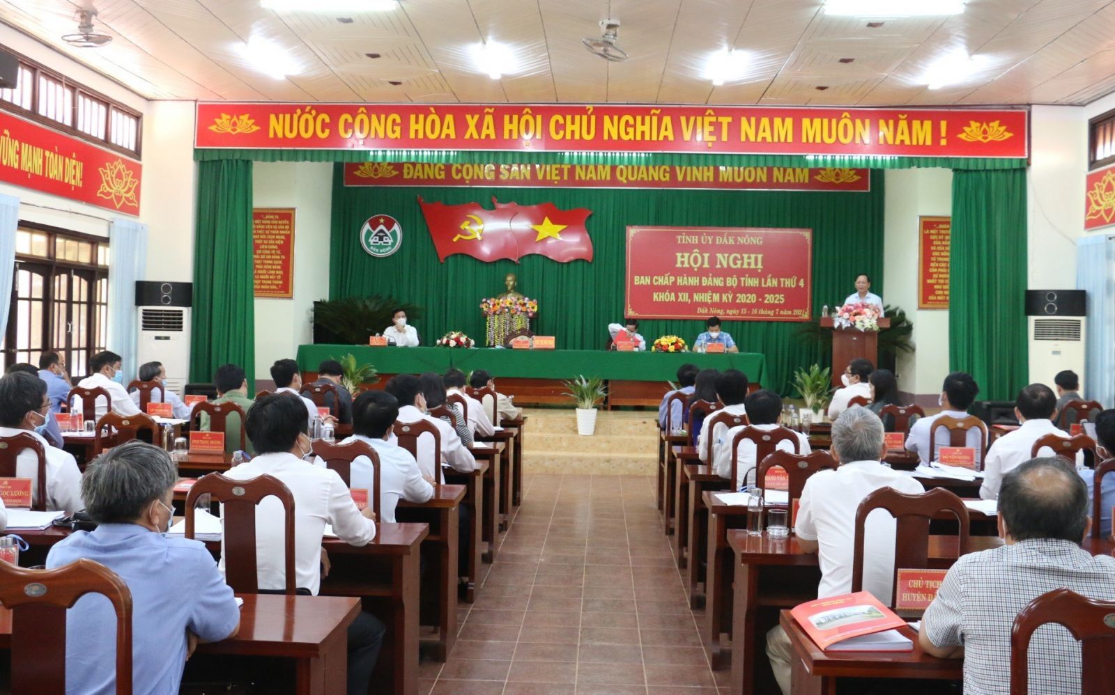 Chiều ngày 16/7, tiếp tục chương trình làm việc, Hội nghị Ban Chấp hành Đảng bộ tỉnh Đắk Nông lần thứ 4 khóa XII, nhiệm kỳ 2020-2025 tiến hành thảo luận tập trung tại hội trường về những vấn đề giải ngân vốn đầu tư công, quy hoạch, phòng chống dịch bệnh Covid 19, thu hút đầu tư và bế mạc hội nghị. Chủ trì hội nghị gồm các đồng chí: Ngô Thanh Danh - Bí thư Tỉnh ủy, Trưởng Đoàn đại biểu Quốc hội tỉnh; Điểu K’ré - Ủy viên Trung ương Đảng, Phó Bí thư Tỉnh ủy; Lưu Văn Trung - Phó Bí thư Thường trực Tỉnh ủy, Chủ tịch HĐND tỉnh; Hồ Văn Mười - Phó Bí thư Tỉnh ủy, Chủ tịch UBND tỉnh.