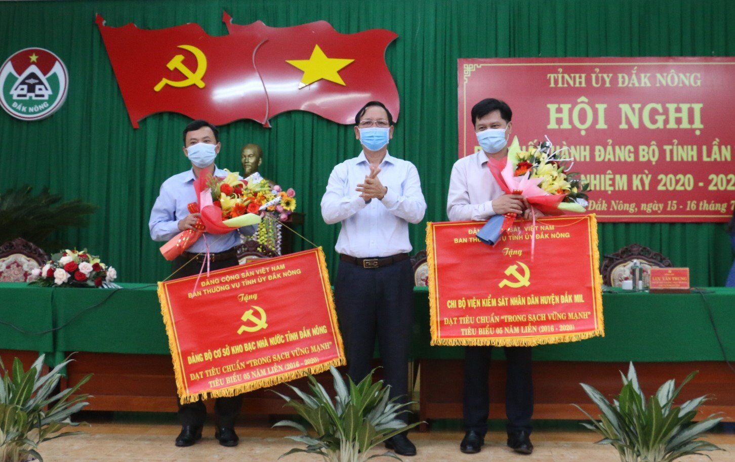 Tỉnh ủy Đắk Nông trao cờ cho 2 tổ chức cơ sở Đảng đạt tiêu chuẩn trong sạch vững mạnh tiêu biểu 5 năm liền.