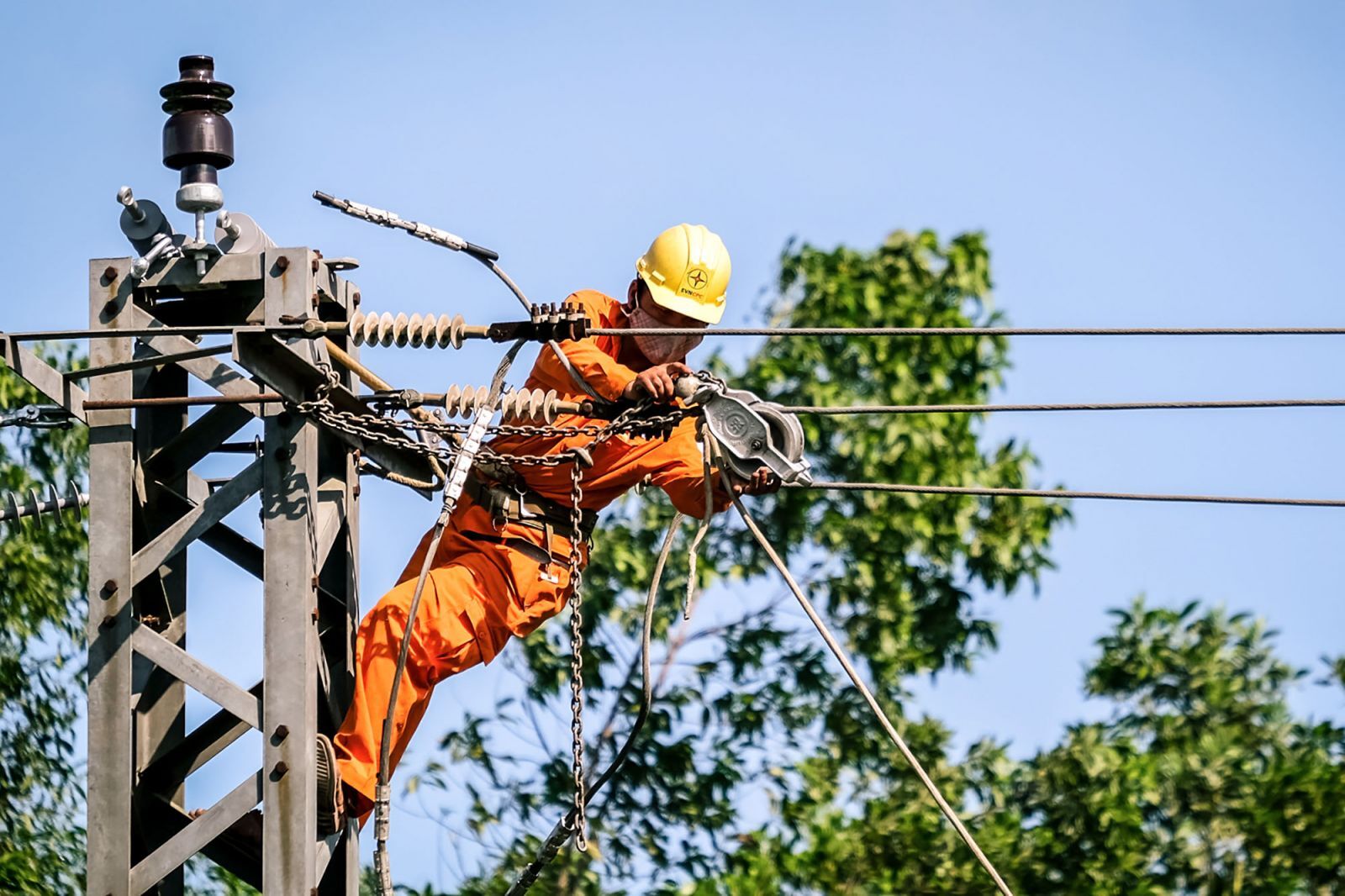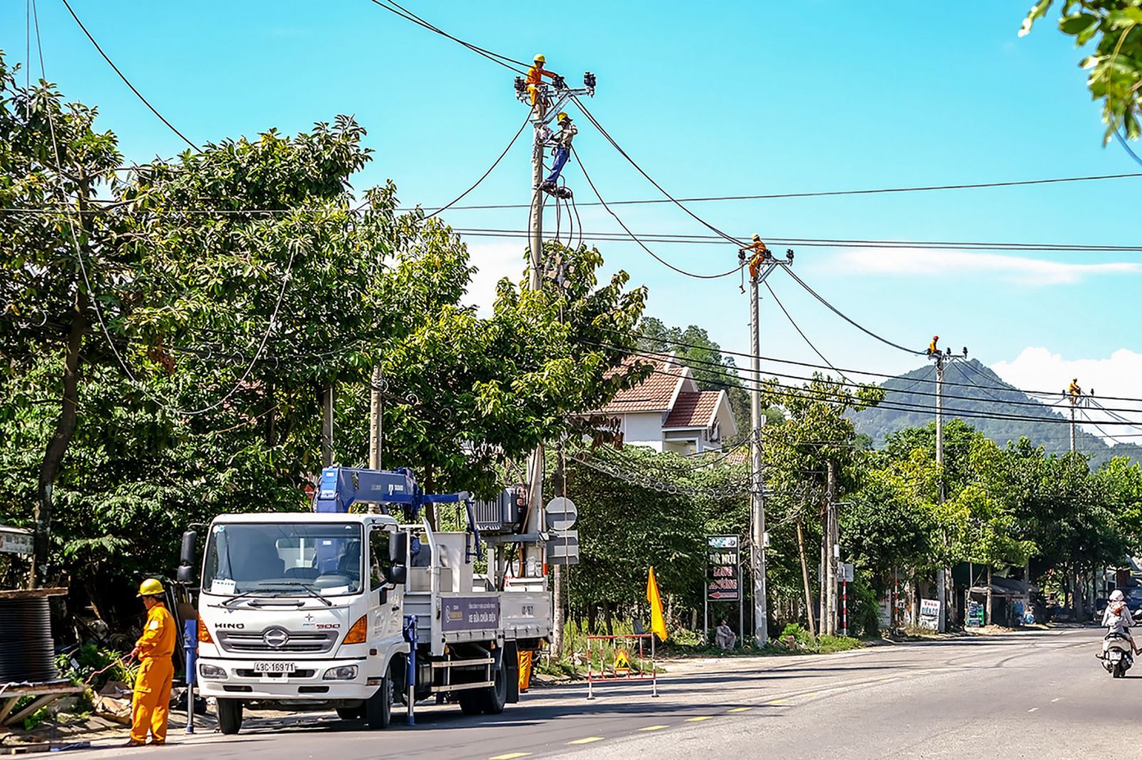 Công nhân PC Đà Nẵng đang nâng cấp lưới điện.