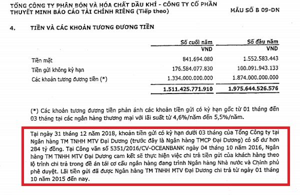 Năm 2018, báo cáo tài chính vẫn tiếp tục phản ánh khoản nợ này với Oceanbank