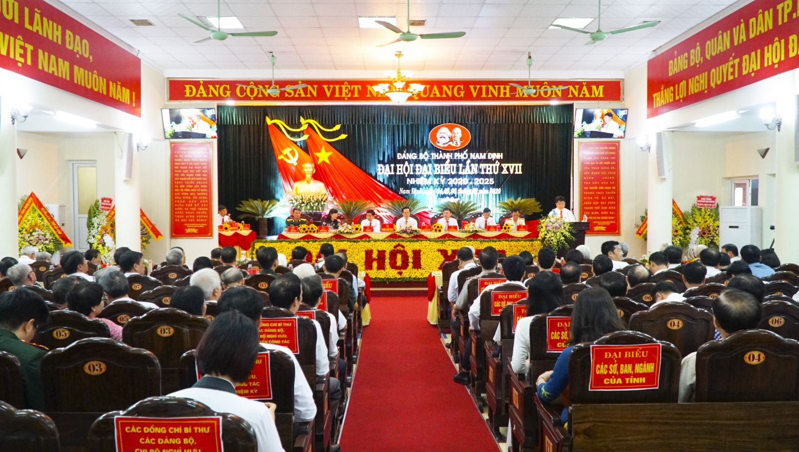 Quang cảnh Đại hội đại biểu Đảng bộ thành phố Nam Định lần thứ XVII, nhiệm kỳ 2020 – 2025