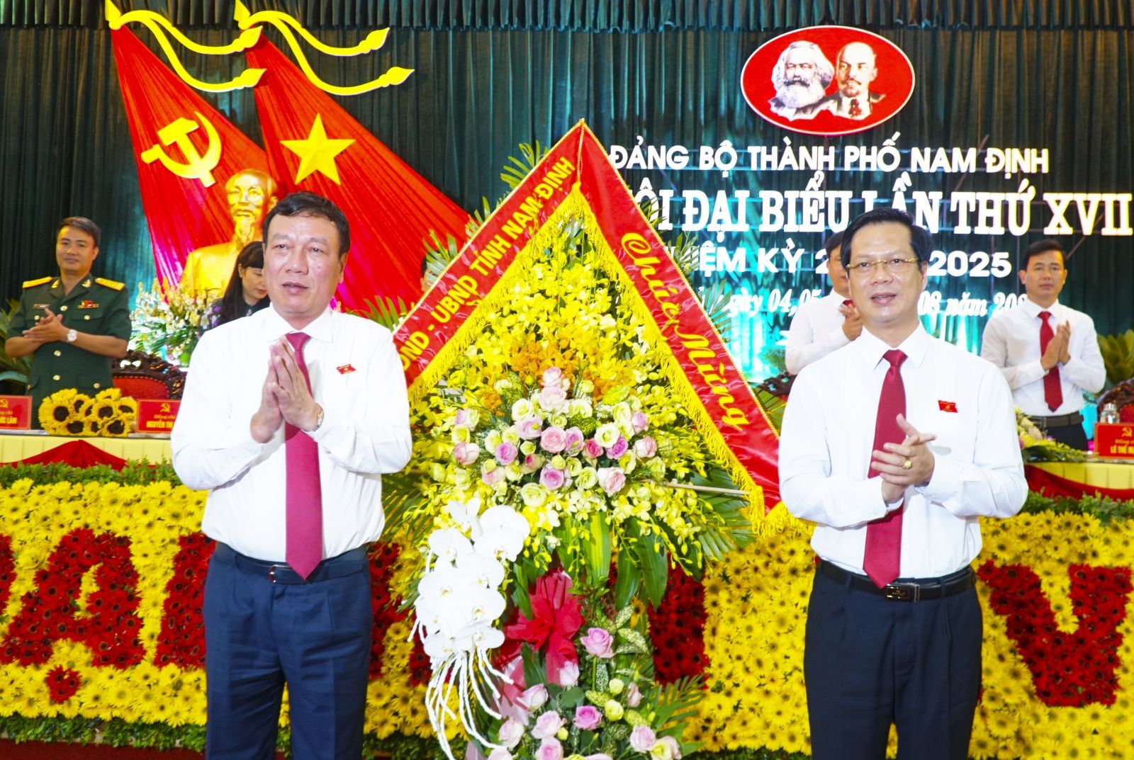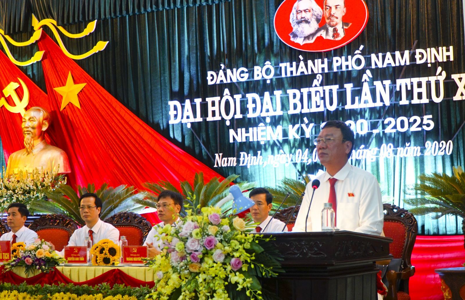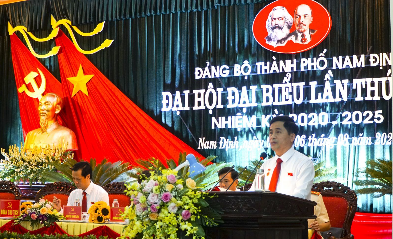 Phát biểu chỉ đạo Đại hội, thay mặt BCH Đảng bộ Tỉnh đồng chí Đoàn Hồng Phong, Ủy viên BCH Trung ương Đảng, Bí thư Tỉnh ủy, Trưởng đoàn Đoàn đại biểu Quốc hội tỉnh Nam Định ghi nhận, biểu dương những kết quả Đảng bộ, chính quyền, quân và dân thành phố Nam Định đã nỗ lực đạt được trong nhiệm kỳ qua. Đồng chí cho biết trong dự thảo báo cáo chính trị trình Đại hội Đảng bộ tỉnh lần thứ XX, nhiệm kỳ 2020- 2025 đã xác định: Phát triển trung tâm công nghiệp – dịch vụ thành phố Nam Định là một trong ba khâu đột phá của tỉnh. Đồng thời, đề nghị Đại hội tập trung thảo luận, đề ra giải pháp thực hiện thắng lợi nhiệm vụ trọng tâm đột phá của tỉnh; sáng suốt lựa chọn các đồng chí tiêu biểu vào Ban chấp hành, bầu một lần đủ số lượng, đảm bảo chất lượng, có cơ cấu hợp lý theo phương án nhân sự để đảm bảo sự lãnh đạo toàn diện của Ban chấp hành Đảng bộ Thành phố nhiệm kỳ 2020 – 2025./.