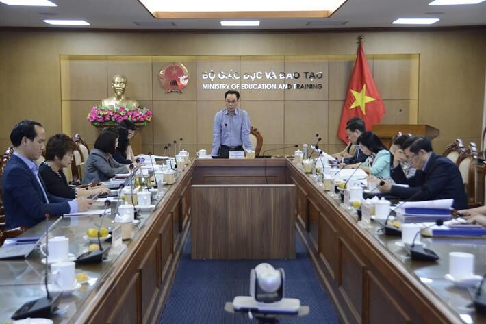 VNHN - Ngày 12/3, Thứ trưởng Bộ GDĐT Hoàng Minh Sơn chủ trì phiên họp Hội đồng tư vấn, đánh giá, nghiệm thu kết quả thực hiện nhiệm vụ Nghiên cứu đề xuất các giải pháp nâng cao chất lượng nguồn nhân lực Việt Nam trong cơ chế thị trường. Đề tài do Trường Đại học Ngoại thương chủ trì thực hiện.