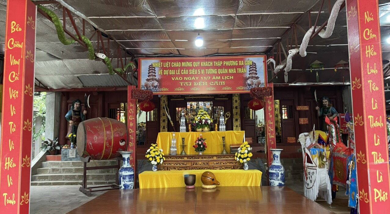 Sau này, để tưởng nhớ các quan binh nhà Trần ngã xuống nơi biên cương, đặc biệt là 5 binh sĩ nhà Trần đã hy sinh tại trận chiến Nguyên Mông tại vùng đất nàycác quan binh và nhân dân đã dựng nên một ngôi miếu nhỏ để thờ phụng. Theo thời gian ngôi miếu dần được tôn tạo tu sửa thành Đền và Đền được cấp bằng công nhận là Di tích Lịch sử Văn hoá cấp Quốc gia vào năm 2001.